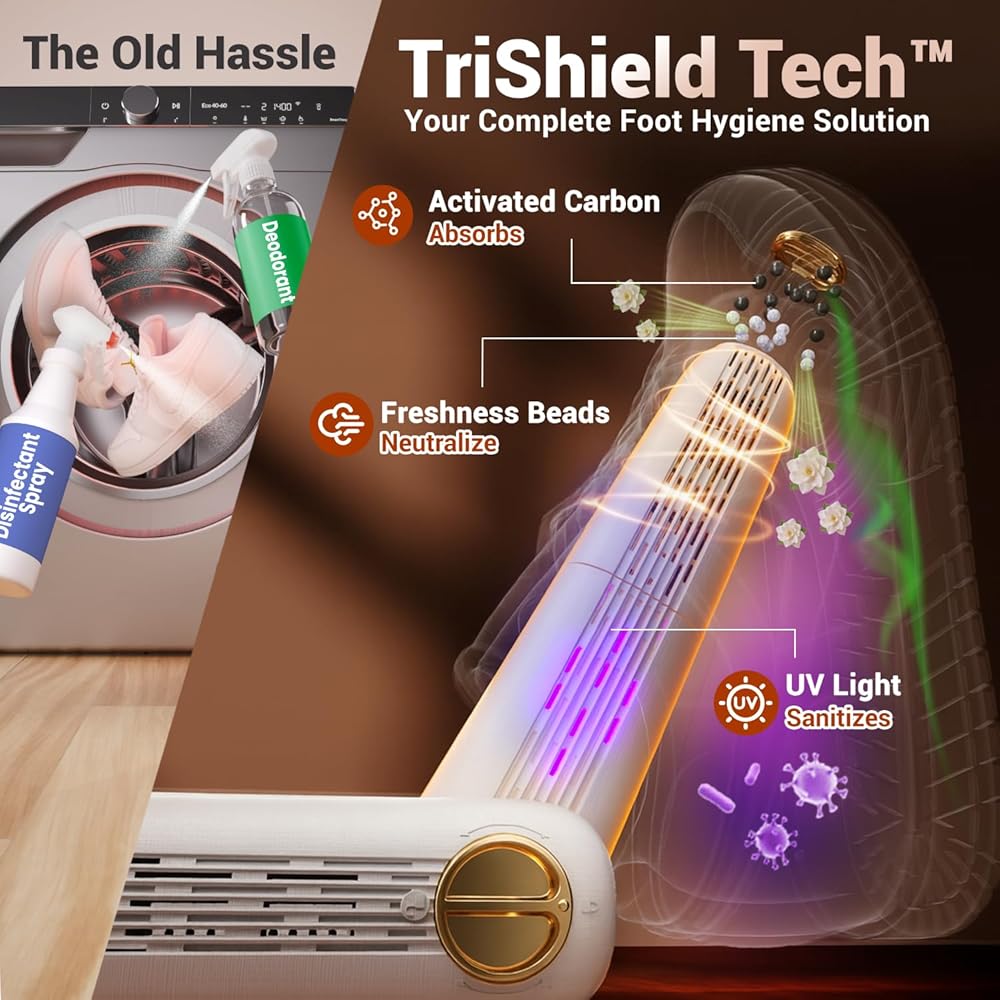 صحي من الداخل إلى الخارج: معقم للأشعة فوق البنفسجية + مزيل للروائح الكريهة - مطهر مدمج بالأشعة فوق البنفسجية بالإضافة إلى خرزات مزيل الروائح الكريهة من الكربون المنشط يساعد على تقليل البكتيريا المسببة للرائحة والروائح الكريهة. تبدو الأحذية جافة ومنتعشة وصحية، وليست دافئة فقط. مثالي بعد التدريبات أو التنقلات الممطرة أو جلسات صالة الألعاب الرياضية.