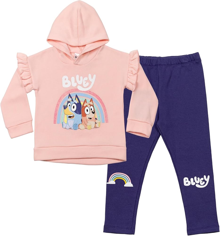 - سويت شيرت وسروال ضيق بغطاء للرأس وأكمام طويلة للفتيات الصغيرات من Bluey Bingo مرخص رسميًا