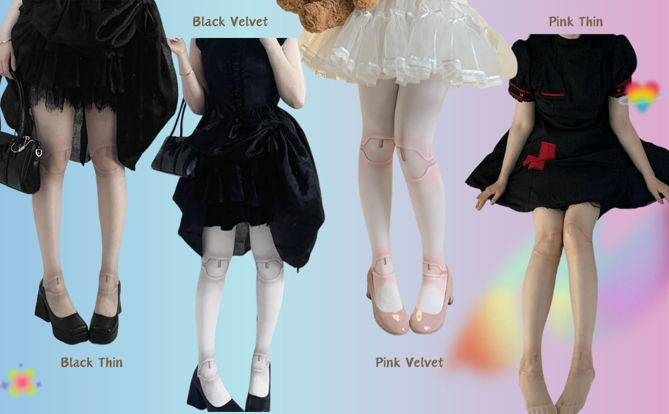 • جوارب طويلة غريبة الأطوار: مع عناصر الدمى المفصلية، هناك مواد مخملية مناسبة لفصلي الخريف والشتاء وجوارب حريرية رفيعة للغاية لفصلي الربيع والصيف للاختيار من بينها، مما يخلق جوًا غريب الأطوار