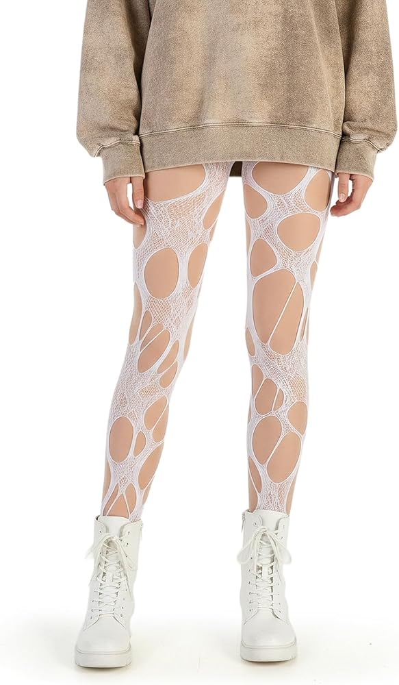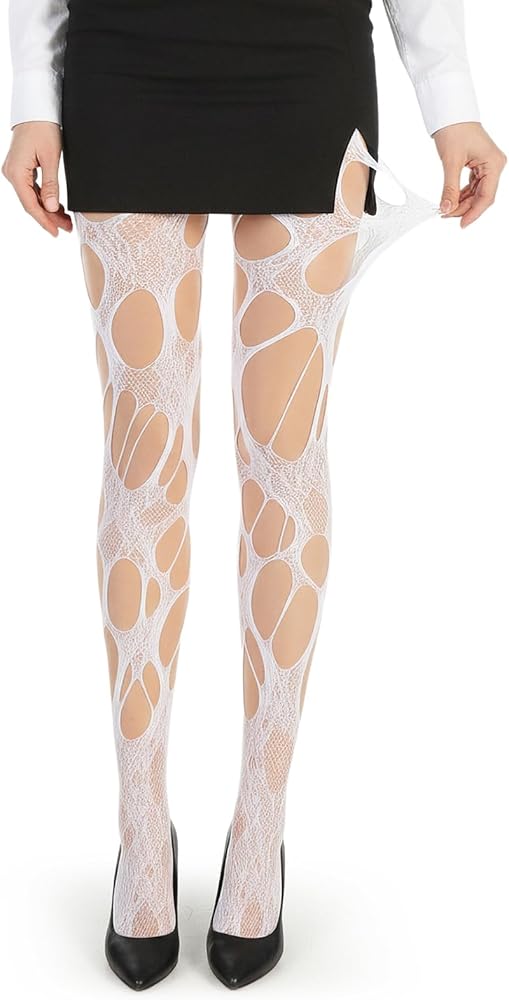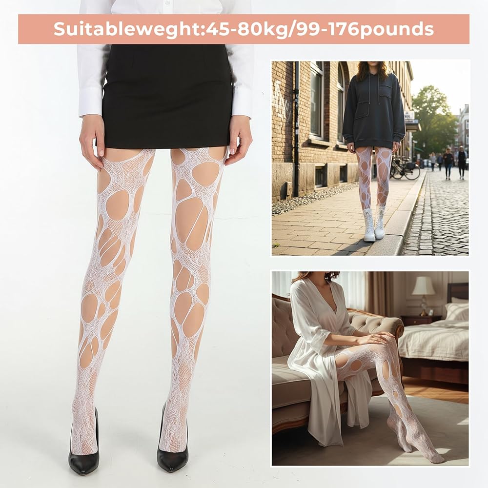 Durability is a surprise perk: even with the ripped design, the mesh fabric is tough enough to resist accidental tearing. It's stretchy enough to fit most body types, and the white color stays bright (no fading after washes) when cared for properly. Unlike delicate lace tights that snag easily, these tights hold up to regular wear, making them a practical choice for frequent use.
