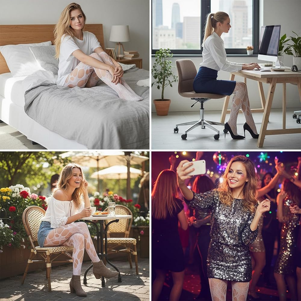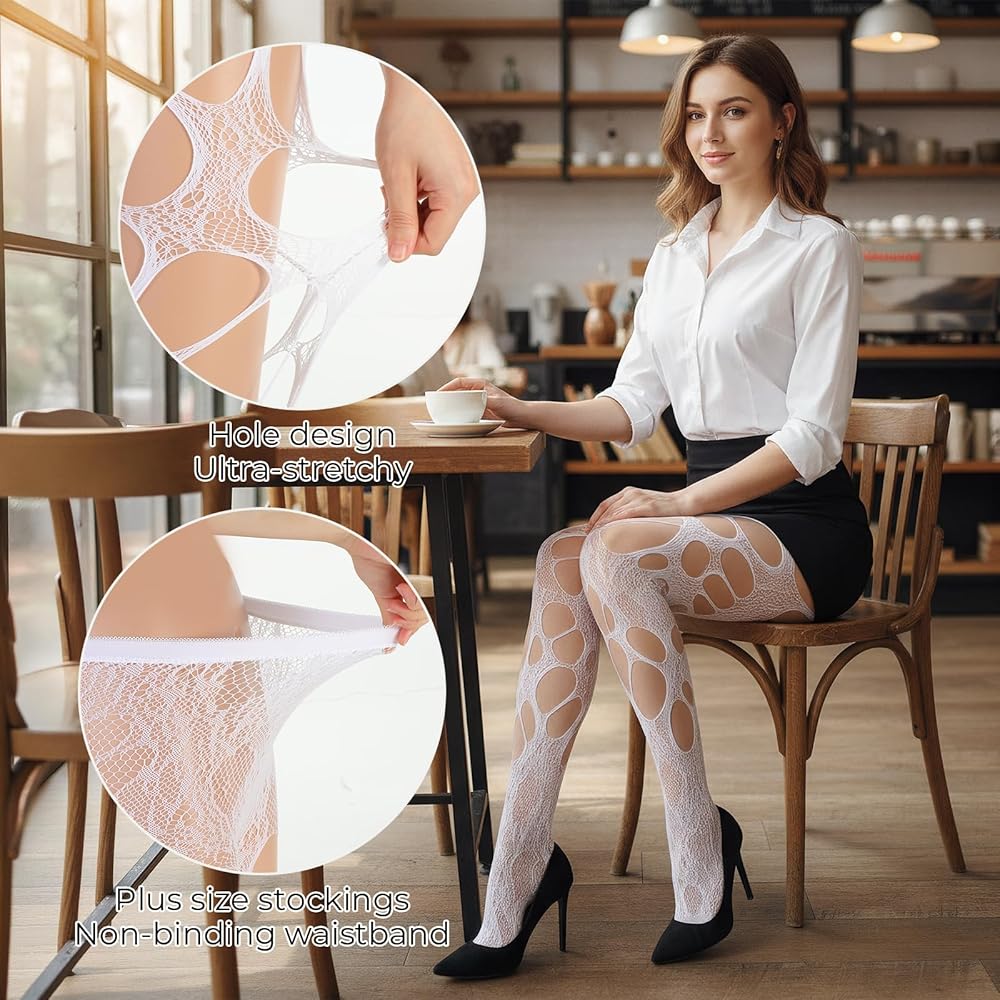 At their core, these are standout white ripped tights: the irregular, intentional holes create a punk-inspired look that's far more dynamic than plain white tights. The mesh fabric doubles as white fishnets, adding subtle texture that elevates simple outfits—think mini dresses, high-waisted shorts, or oversized sweaters. They're tailored specifically as white tights women , with stretchy fabric that fits snugly without digging in, ensuring all-day comfort whether you're walking, dancing, or posing for photos.