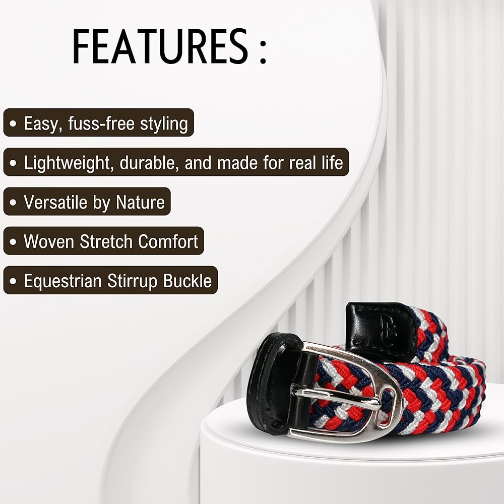 Introducing the Dubois Cheval Woven Stirrup Stretch Belt Kids - the ultimate blend of timeless equestrian style and everyday. Styled just like our grown-up favorite, this kid-sized stretch woven belt features the same iconic stirrup buckle —but with a fit made just for little riders (or mini style stars).