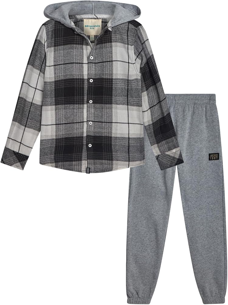 طقم بنطال الركض للأولاد من AEROPOSTALE - قطعتين من قمصان الفلانيل بغطاء للرأس وأزرار سفلية ومجموعة ملابس للأولاد الركض (8-12) in Kuwait