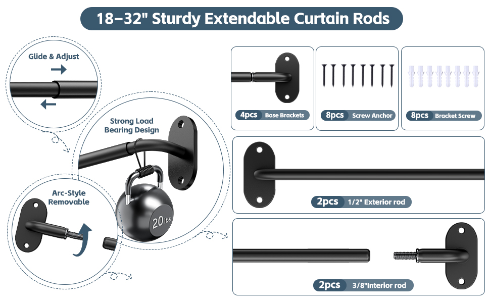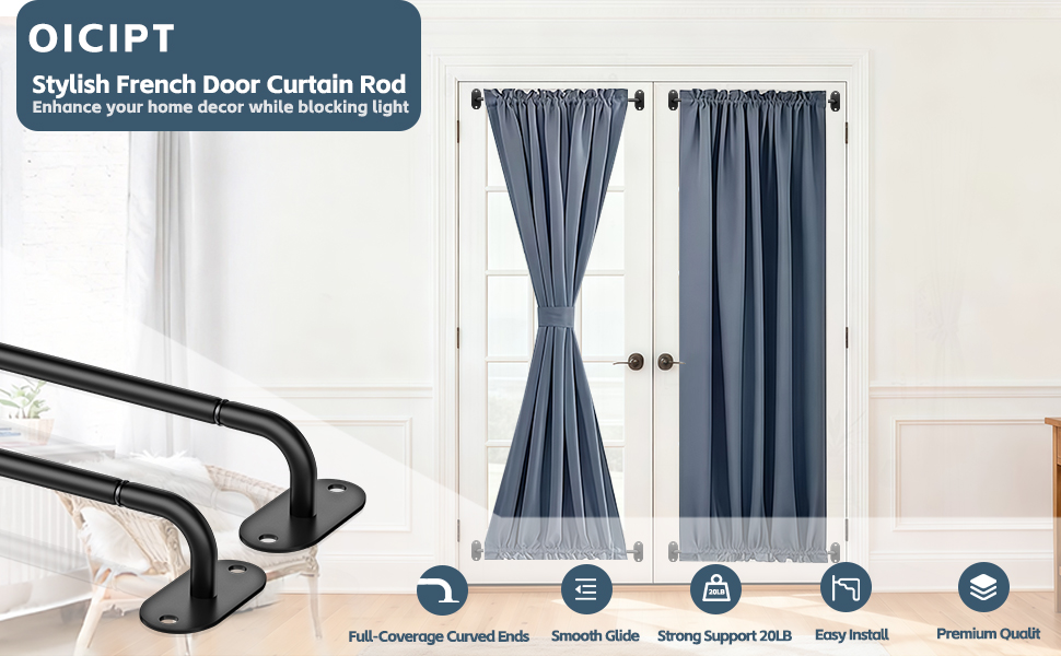 قضيب ستارة باب قابل للتعديل مقاس 18-32 بوصة: قضبان ستارة الأبواب الفرنسية لدينا قابلة للتعديل من 18 إلى 32 بوصة، بقطر 3/8 بوصة، مما يسمح لك بتعديل الطول بحرية ليناسب مساحتك. خفيفة الوزن ولكنها متينة، وتستوعب بسهولة النوافذ الصغيرة أو النوافذ الجانبية أو الأبواب الفرنسية أو الأبواب الأمامية، مما يحافظ على ستائرك مرتبة بشكل أنيق ومظهر جميل. لضمان أفضل أداء، يرجى قياس المساحة الخاصة بك بعناية قبل التثبيت.