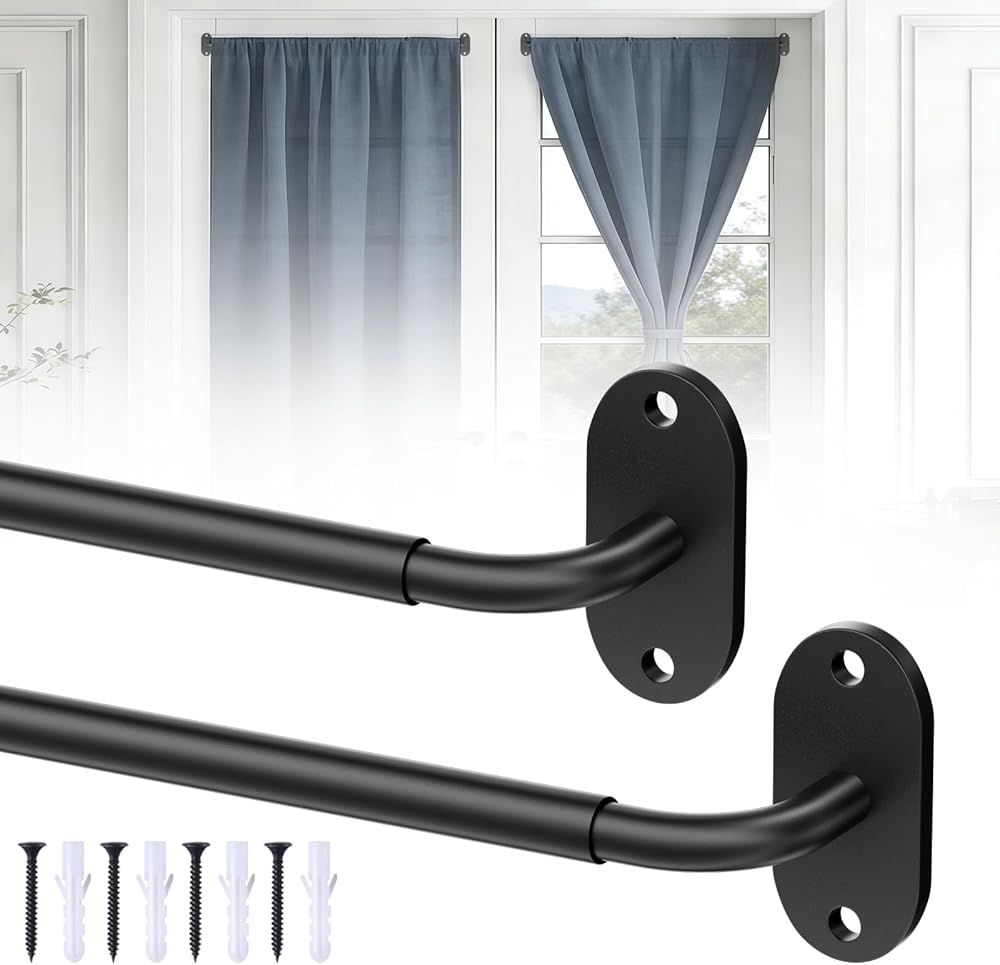 2 حزمة من قضبان ستائر الباب الفرنسية، قضبان وشاح مثبتة على براغي قابلة للتعديل مقاس 18-32 بوصة، قطر 1/2 بوصة ملفوف حول قضيب ستارة المقهى للباب والنافذة الصغيرة (أسود)