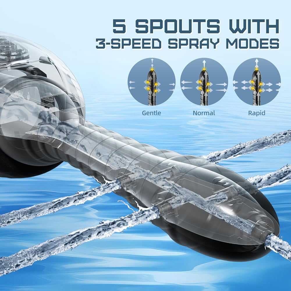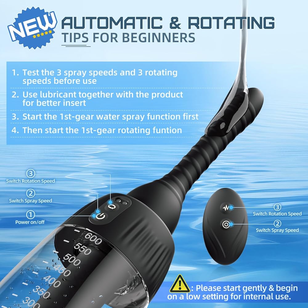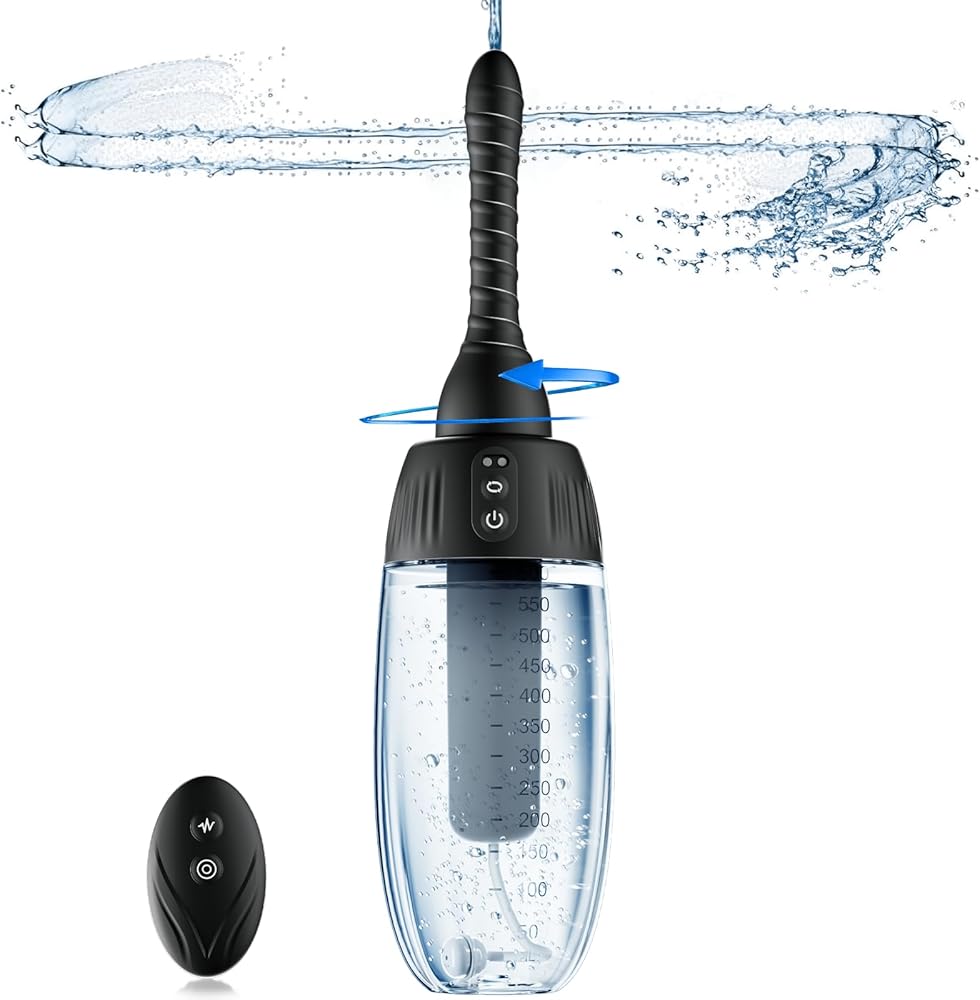 حقنة شرجية دوارة أوتوماتيكية - 20 أوقية دوش للرجال والنساء تنظيف عميق 360 درجة 5 فوهات مع 3 سرعات دوران ورذاذ، مجموعة حقنة شرجية كهربائية مضادة للتدفق العكسي للتحكم عن بعد من السيليكون