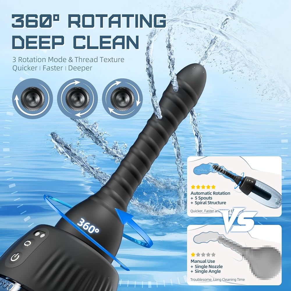 【أوضاع دوران ثلاثية السرعات وتصميم فريد للخيط】تحتوي لمبة الحقنة الشرجية الدوارة الأوتوماتيكية على 3 أوضاع دوران للسرعة. يمكنك التبديل بسهولة بين الأوضاع المنخفضة/المتوسطة/القوية أثناء الاستخدام للحصول على تجربة مستخدم أفضل. التصميم الملولب في الفوهة يجعل من السهل إزالة البقع العنيدة في كل زاوية عند الشطف. يتيح لك التصميم ثنائي الوظيفة الحصول على تنظيف أعمق عند استخدامه.