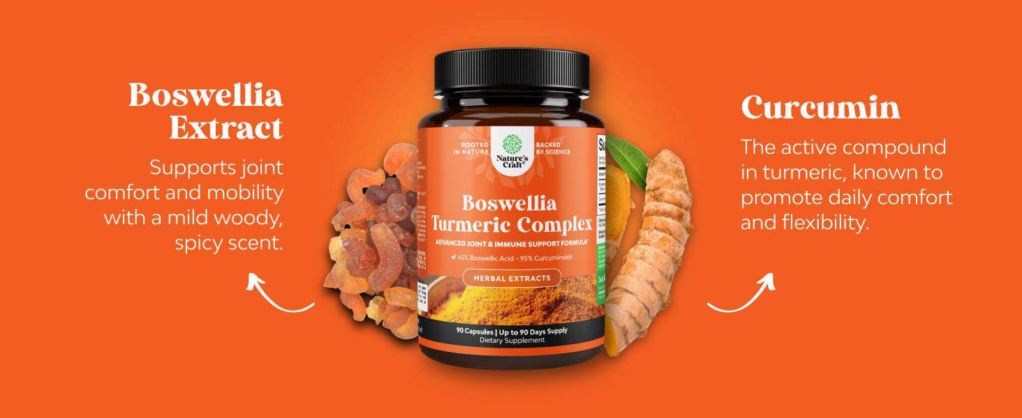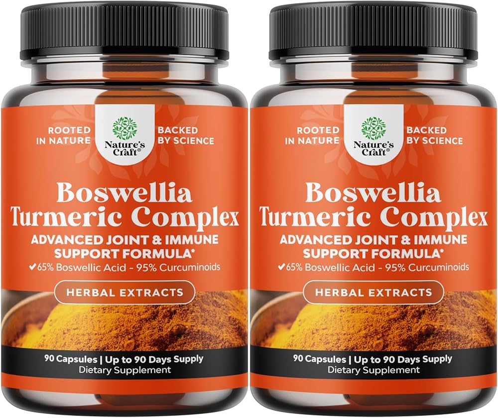 مزيج نباتي قوي - يوفر مركب البوسويليا الخاص بنا، المشتق من اللبان الهندي، 65% من حمض البوسوليك القياسي، مقترنًا بمستخلص جذور الكركم الغني بالكركمينويدات. تعمل هذه المركبات النشطة بيولوجيًا على تعزيز الصحة العامة وتساعد في الحفاظ على راحة المفاصل وصحة المناعة.