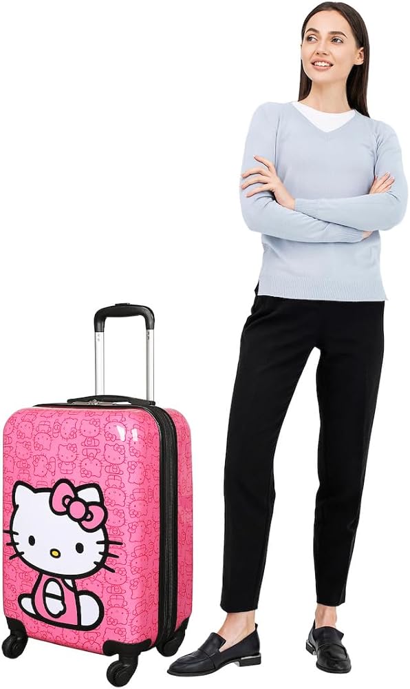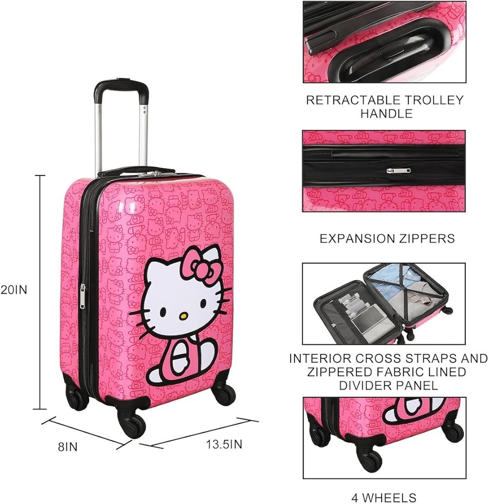 Custom Design: Showcases Hello Kitty sitting on a pink background for an adorable travel look. Product Dimensions: 20" H x 13.5" W x 8" D