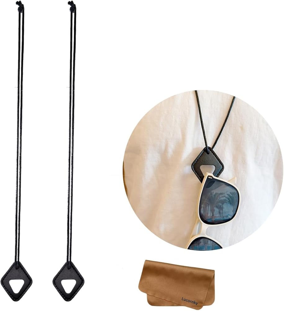 خامة ممتازة: مصنوعة من جلد البولي يوريثان الناعم والمتين وحبل نايلون قوي، شماعة النظارات هذه خفيفة الوزن وصديقة للبشرة ومصممة لتدوم طوال الارتداء اليومي.