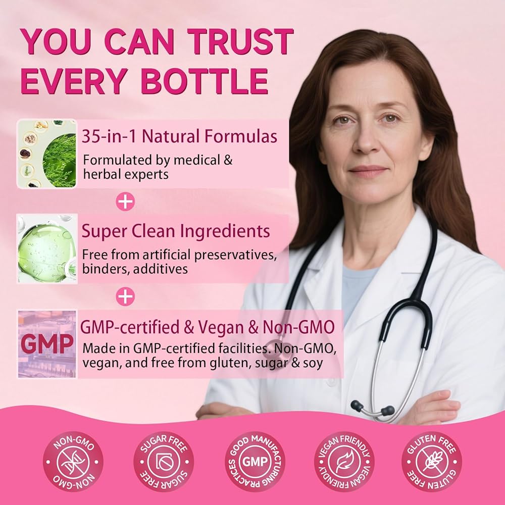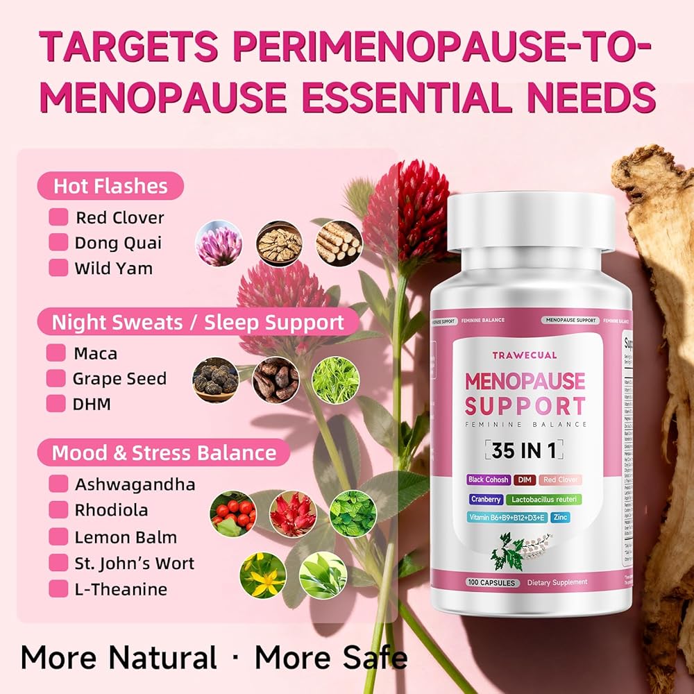 • 【تخفيف الومضات الساخنة والتعرق الليلي】مصمم خصيصًا كمكملات لانقطاع الطمث للنساء، ويضم الكوهوش الأسود، وDIM، والبرسيم الأحمر، ودونج كاي، وماكا، والأشواغاندا لدعم توازن الهرمونات للنساء وتخفيف الهبات الساخنة والتعرق الليلي. استمتع بنوم هادئ وابقَ نشيطًا وواثقًا طوال اليوم.