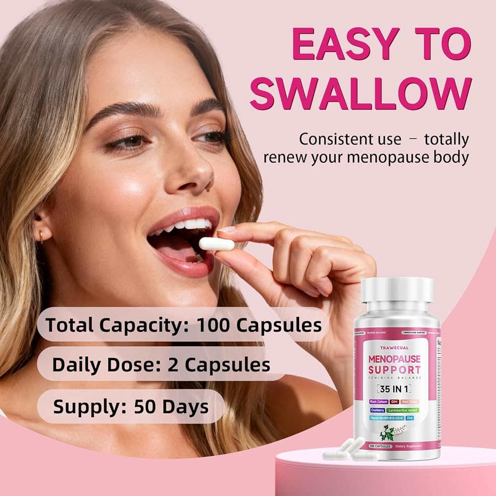 • 【كبسولات سهلة البلع】فقط كبسولتان صغيرتان يوميًا، لطيفة على المعدة. كمية تكفي لمدة 50 يومًا من المكونات العشبية الطبيعية، وغير معدلة وراثيًا، وخالية من الغلوتين، وخالية من المواد الحافظة الاصطناعية. يدعم رحلة انقطاع الطمث المريحة مع تخفيف الوميض الساخن للنساء.