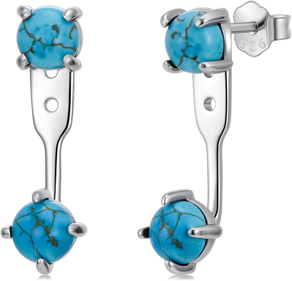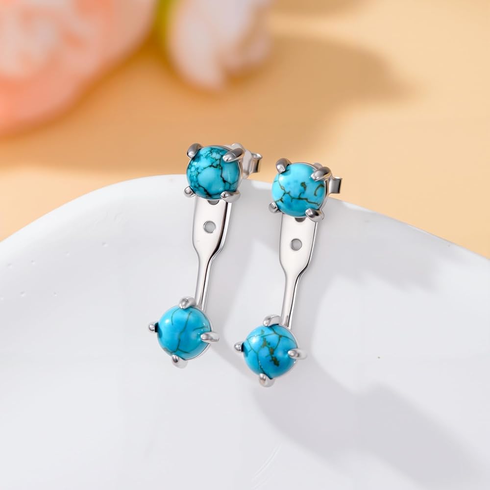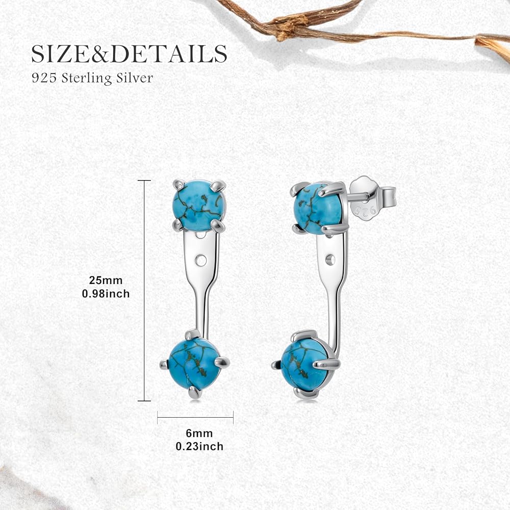 SIZE - Earring long size: 25 mm. Turquoise stone size: 4pcs 6mm.These natural turquoise earrings jackets that are the nice decoration for your ears! Wear it can enhance your everyday fashion decorations color statement look
