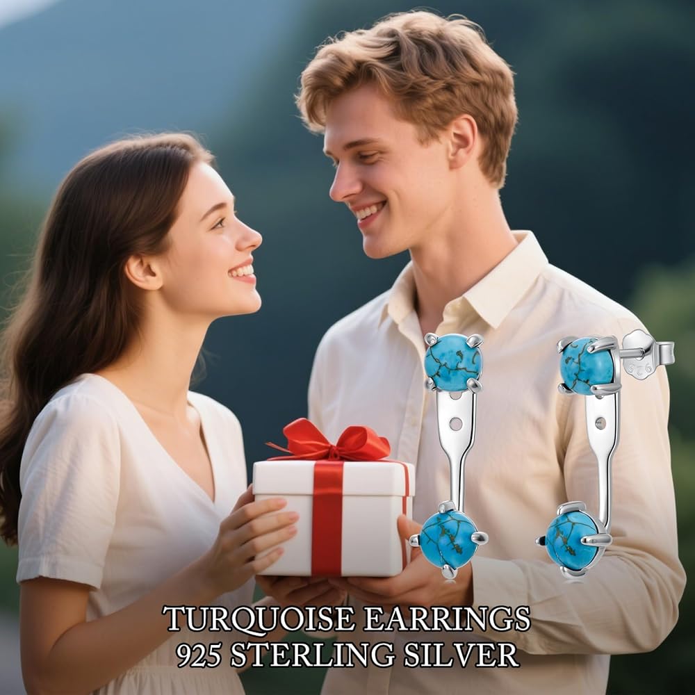 FOR HER - The sterling silver turquoise earrings with elegant gift box,as a nice gift for your wife, mother, women friends or yourself, especially on Christmas, Anniversaries, Birthdays, Mother's day, New Year and so on