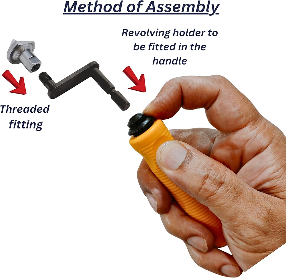 حامل ومقبض مريح - مجهز بمقبض عريض مريح من البولي اسيتال لقبضة آمنة وغطاء طرفي كروي لراحة اليد. كما أنها مجهزة بحامل دوار قابل للتمدد يدور 360 درجة داخل المقبض. تحتوي أداة التمديد على خيوط داخلية لتناسب الحامل