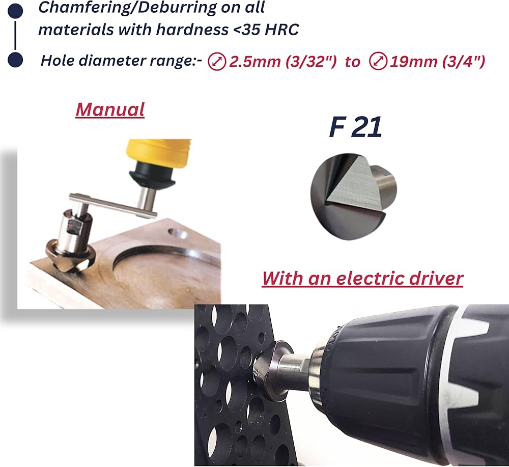 أداة يدوية - شفرة حادة بزاوية 90 درجة، مثالية لتوسيع الفتحات الدائرية في الخشب أو البلاستيك أو المعدن من قطر 2.5 ملم إلى 19 ملم. يعمل أيضًا بشكل رائع لإزالة النتوءات حول حواف الفتحة. سواء كنت محترفًا صناعيًا أو متخصصًا في الأعمال اليدوية، فإن أدواتنا رائعة لك. يمكن استخدامه يدويًا أو بمساعدة محرك كهربائي.