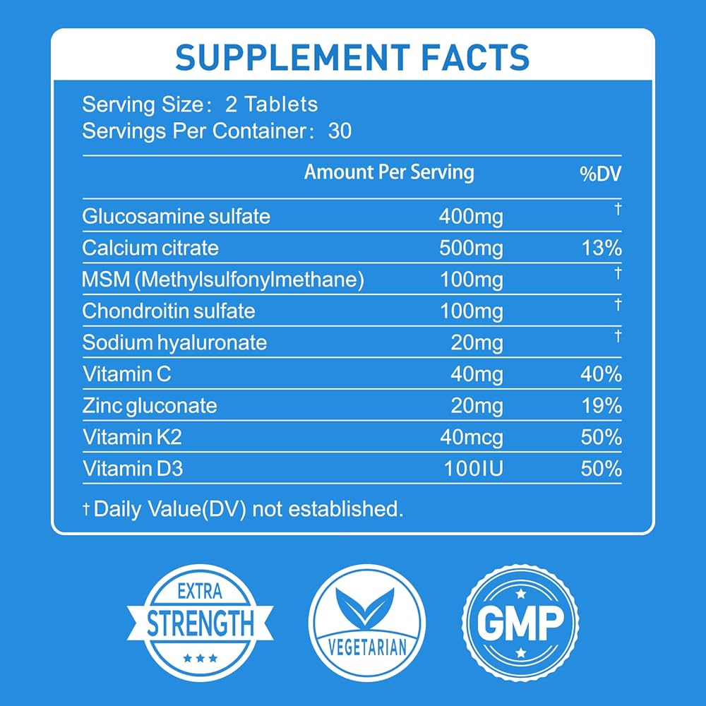 يدعم وظيفة المفاصل الصحية - تركيبة فريدة من الجلوكوزامين والكوندرويتين وميثيل سلفونيل ميثان. يساعد على دعم حركة المفاصل وبنيتها وراحتها وقوتها ومرونتها. يدعم صحة الغضاريف على المدى الطويل ومرونة المفاصل للبالغين.