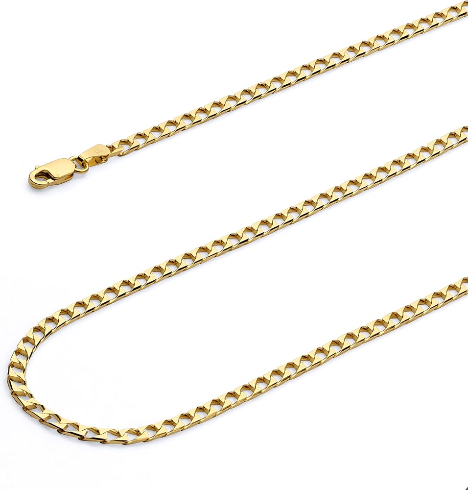 Wellingsale 14K Solid Gold Square Cuban Link Curb Chains (Select Options)
