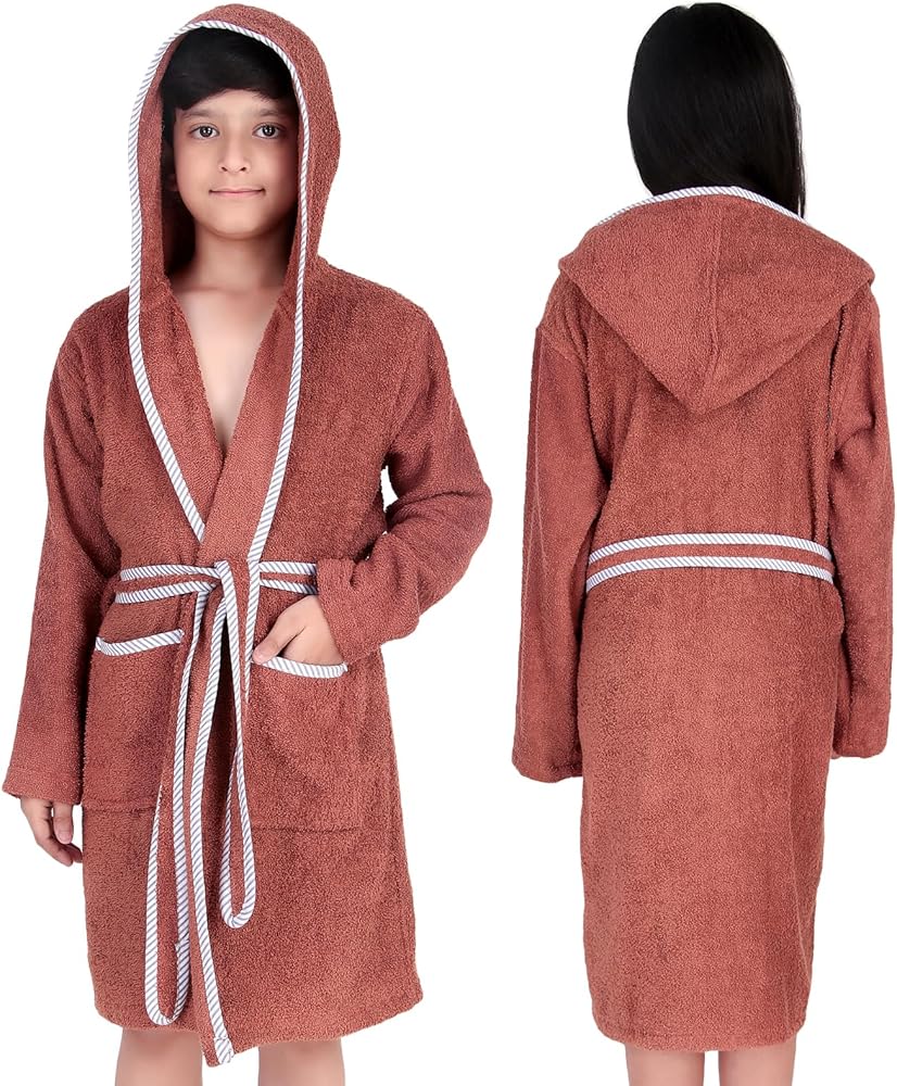 🎁 هدية مثالية وعناية سهلة - هدية مدروسة لعيد الميلاد أو الكريسماس أو العطلات للأولاد والبنات من سن 5 إلى 14 عامًا. خفيف الوزن، ومتين، وقابل للغسل في الغسالة، يبقى رداء الحمام القطني ذو القلنسوة هذا مريحًا بعد كل غسلة.