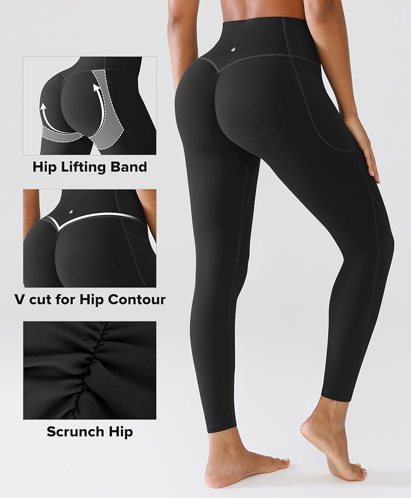 BRXL Scrunch Butt Lifting Leggings with Pockets for Women, 25'' Tummy Control High Waisted No Front Seam Leggings