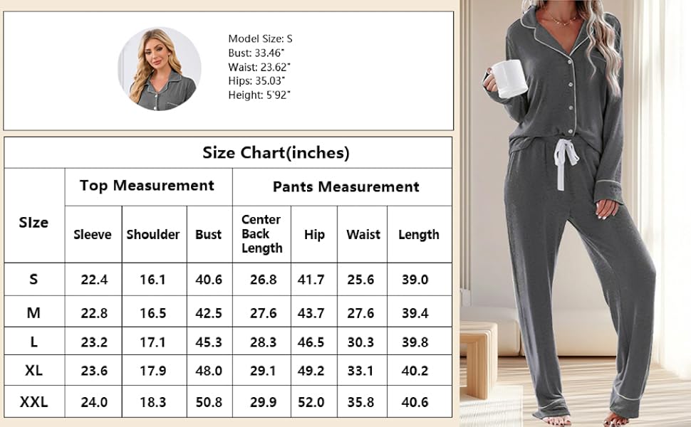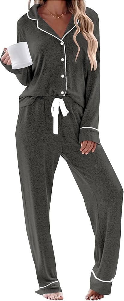 أطقم بيجامات ناعمة ومريحة للنساء: مصنوعة من 95% فيسكوز و5% ألياف لدنة، مجموعة البيجامات ذات الأكمام الطويلة هذه ناعمة وخفيفة الوزن ومسامية وقابلة للتمدد، مما يضمن أقصى قدر من الراحة لنوم مريح أثناء الليل.