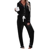 تصميم أنيق بأزرار لأعلى: يتميز قميص بأزرار سفلية مع ياقة مشقوقة، وجيب على الصدر، وتفاصيل أنابيب متباينة، تجمع مجموعة البيجامة النسائية هذه بين الأناقة والراحة. تتميز سراويل البيجامة الطويلة بحزام خصر مطاطي مع رباط قابل للتعديل لملاءمة مثالية.