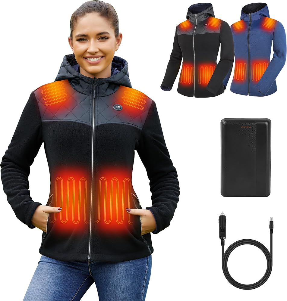 حرية تسخين مزدوجة الطاقة: استمتع بما يصل إلى 8 ساعات من الدفء اللاسلكي مع البطارية القوية القابلة لإعادة الشحن بقدرة 15000 مللي أمبير في الساعة، أو قم بتوصيله بمحول السيارة 12 فولت المرفق للتدفئة المستمرة. توفر هذه السترة النسائية المُسخنة كهربائيًا دفءًا موثوقًا سواء كنت في رحلة على الطريق، أو تستكشف المسارات، أو تشجع في الأحداث الرياضية الخارجية. لا تدع البرد يحد من مغامراتك أبدًا!