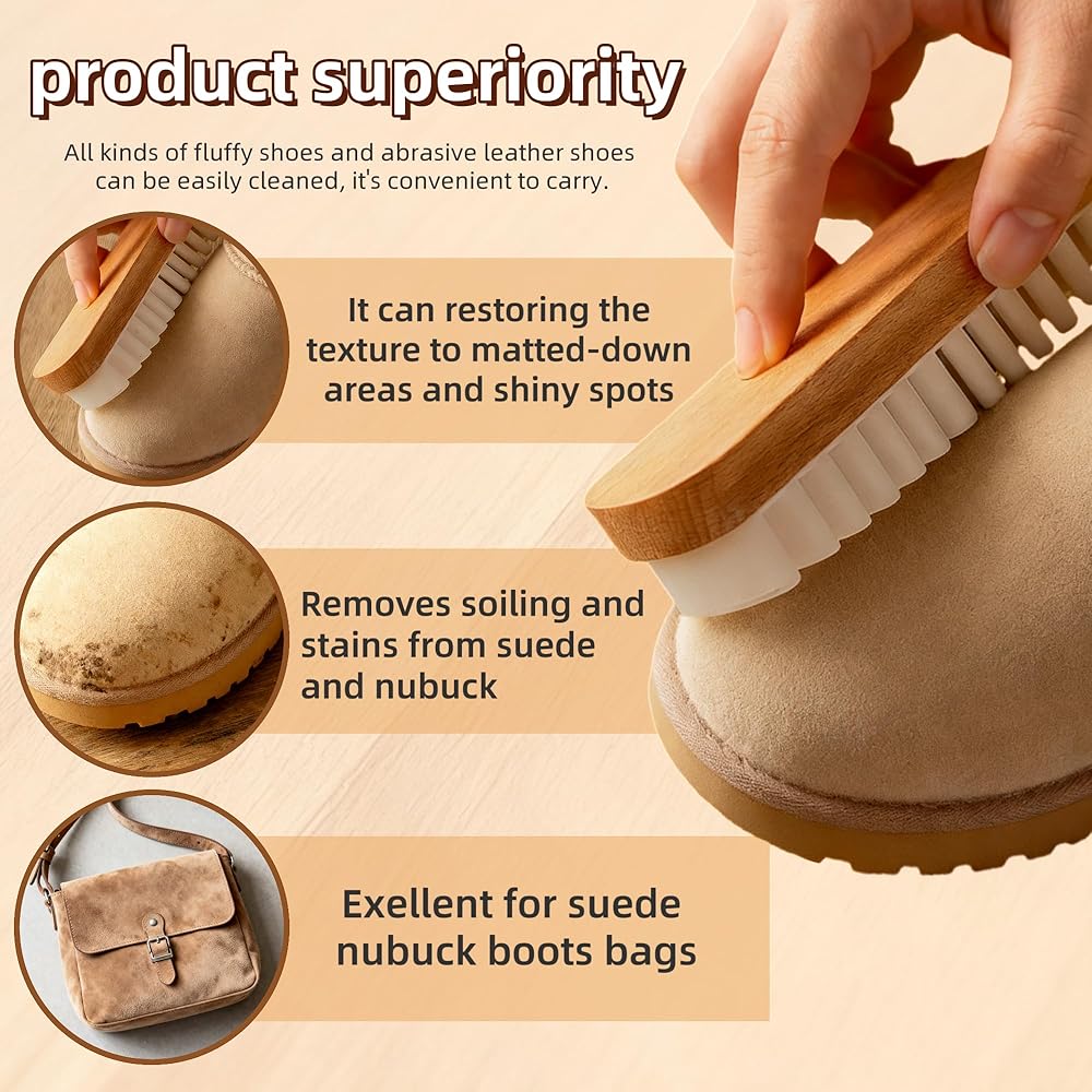 Perfect for suede and nubuck shoes, boots, handbags, hats, and jackets. Its dry-cleaning design is safe for delicate surfaces and helps extend the life of your favorite footwear. Compact, durable, and ready to use anytime, anywhere.