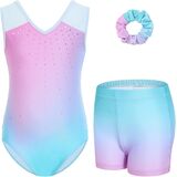 3 قطع من ملابس الجمباز الكاملة - تتضمن قطعة واحدة من ثوب الرقص، وسروال قصير متطابق، و1 ربطة شعر. لا حاجة للمطابقة بشكل منفصل. يوفر الشورت تغطية إضافية وثقة أثناء التمرين، مما يجعله زي رقص جاهز للتمرين للفتيات