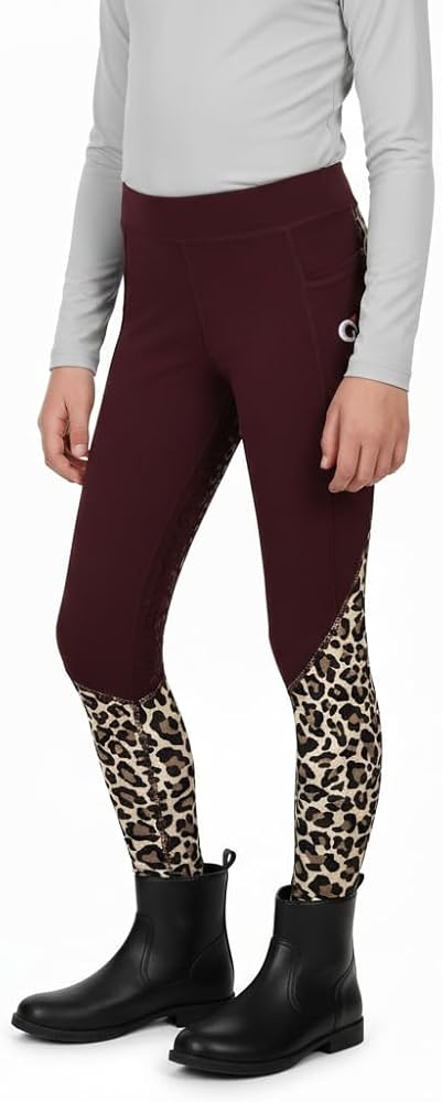 • Stylish Leopard Print Panels – Modern leopard print design adds a fun, sporty look that kids love while maintaining a professional equestrian appearance.
