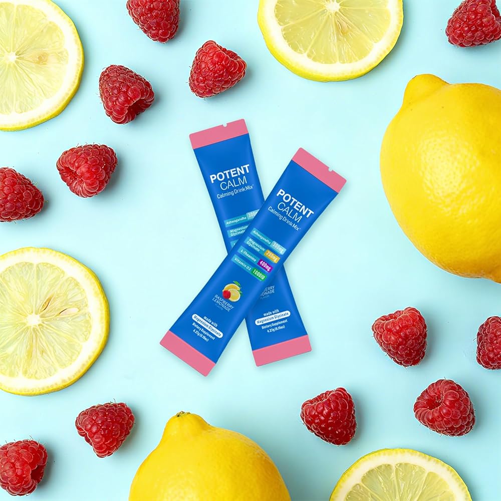 مشروب الكورتيزول القوي من بوتنت كالم، مسحوق جليسينات المغنيسيوم، إل-ثيانين، أشواغاندا، فيتامين د، بدون سكر، مسحوق إلكتروليتات عصير الليمون والتوت - 30 حصة