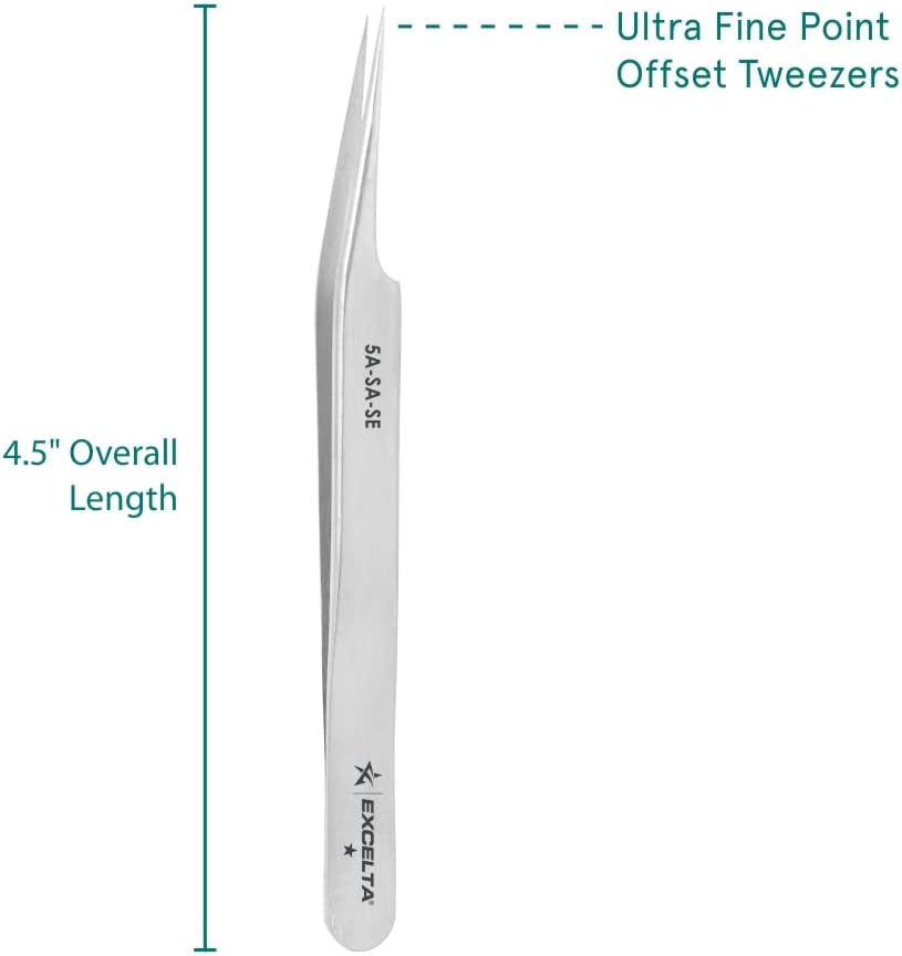 ملقط ذو طرف فائق النعومة من Excelta، ملقط من الفولاذ المقاوم للصدأ مصنف بدقة نجمتين، الطول الإجمالي 4.25 بوصة