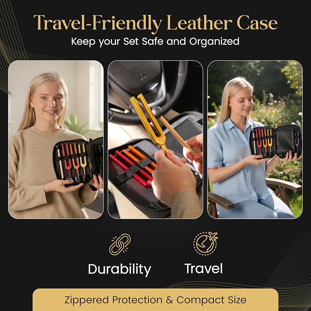 براعة ممتازة وتعلم موجه وأدوات داعمة - تتميز هذه المجموعة المنسقة بشوكات ضبط علاجية من سبائك الألومنيوم عالية الجودة للحصول على نغمات واضحة ونقية متسقة ودقة ومتانة. يشتمل على حقيبة سفر واقية للتخزين ودليل تعليمي منظم يقدم اقتراحات استخدام بسيطة للاستخدام الواثق في رحلة العافية الشخصية.