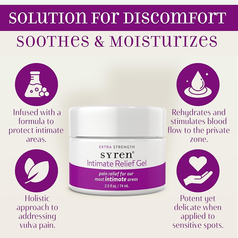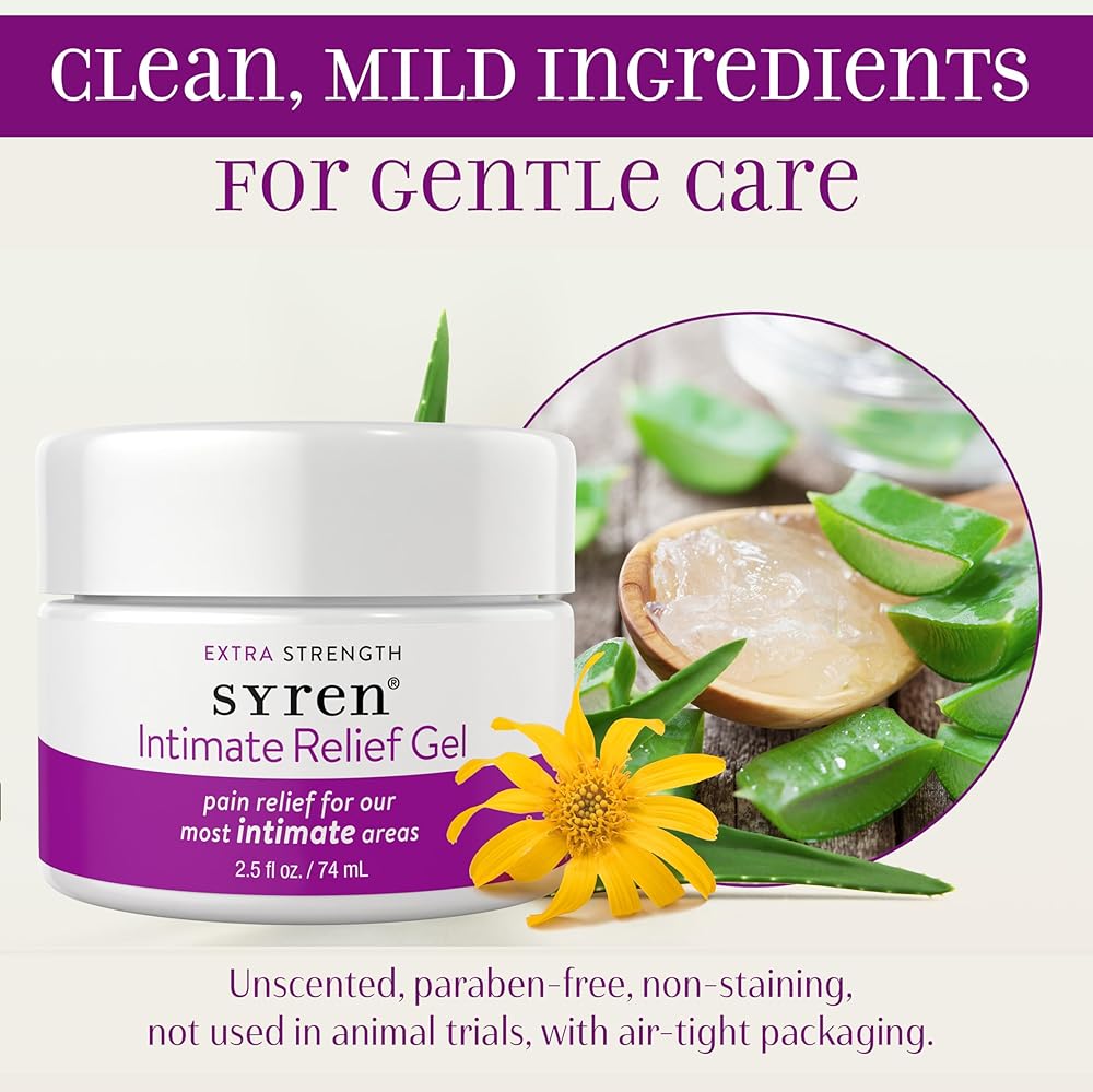 • 🩺 يوصى به OBGYN: يساعد Syren Intimate Relief على تهدئة البشرة الجافة الناجمة عن انقطاع الطمث والتغيرات الهرمونية الأخرى، وبعد الولادة، ودعم ما بعد الإجراء، والاحتكاك، والتهيج الكيميائي، والاستمالة وأكثر من ذلك، بالإضافة إلى تقليل الجفاف والاحمرار والحكة والانزعاج العام.