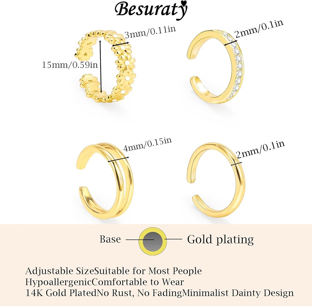 Multiple Occasion - These 14K gold open rings are elegant and timeless, which never out of style. You can wear them as stackable rings when beach vacations or special occasions, also single wear when daily wear. Perfect for all kinds of occasion!