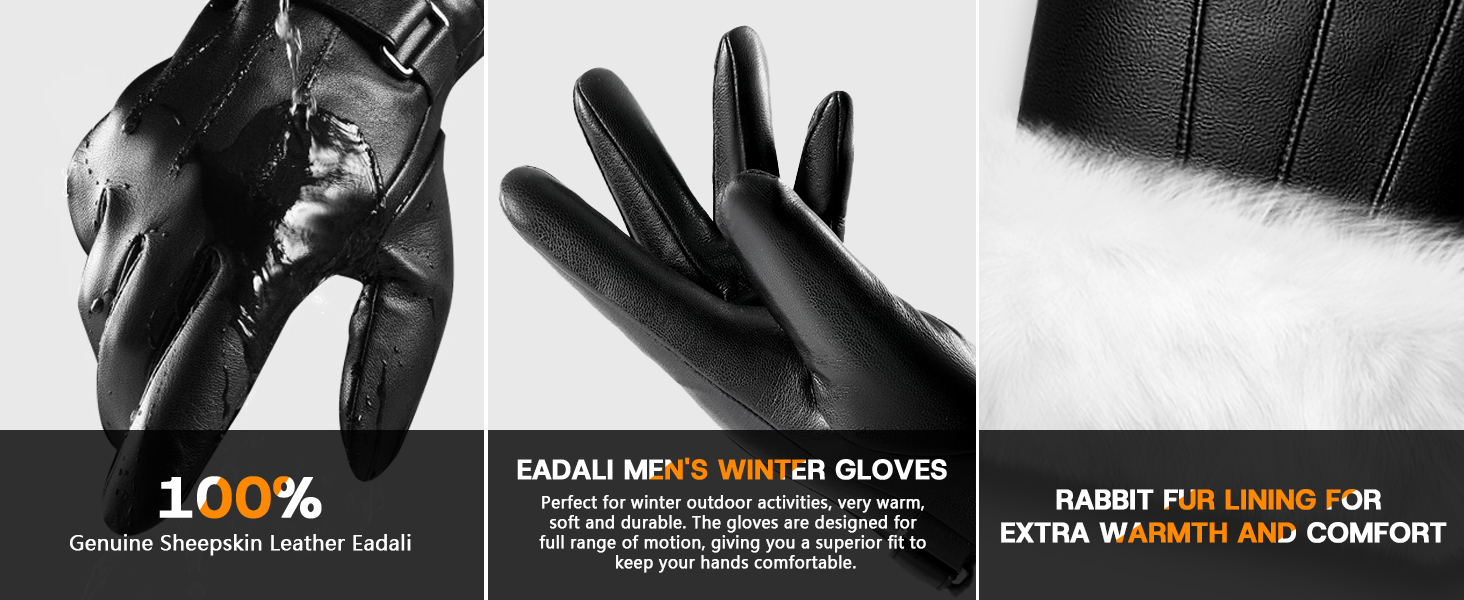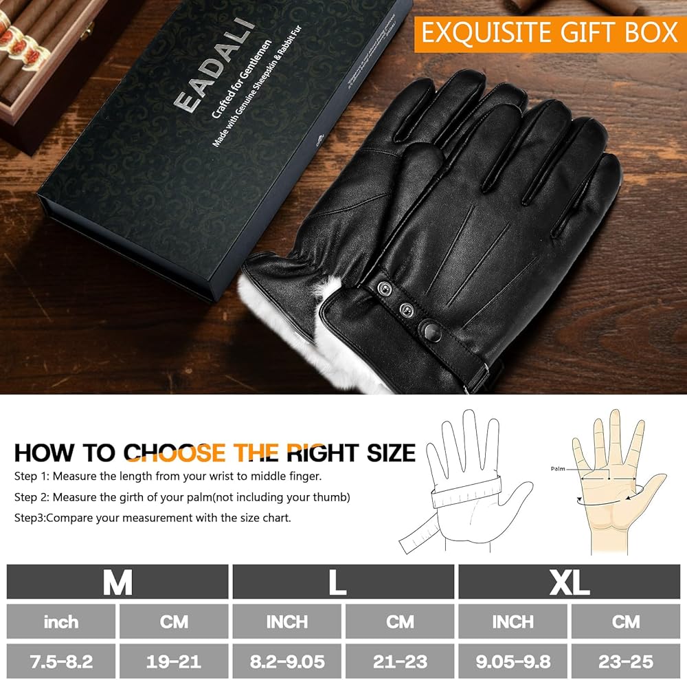 【بطانة من فراء الأرانب الطبيعي بالكامل من أجل تدليل نقي】 تنغمس القفازات الجلدية الشتوية للرجال في نعومة لا مثيل لها مع جزء داخلي كامل من فراء الأرانب الطبيعي. توفر البطانة الفاخرة والكثيفة والدافئة بشكل فاخر إحساسًا مخمليًا يرفع الراحة إلى مستوى جديد - مثالي لأولئك الذين يقدرون الفخامة السرية.