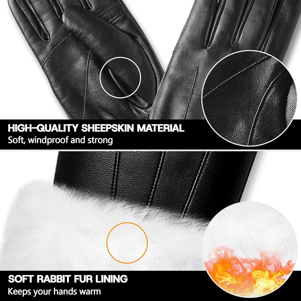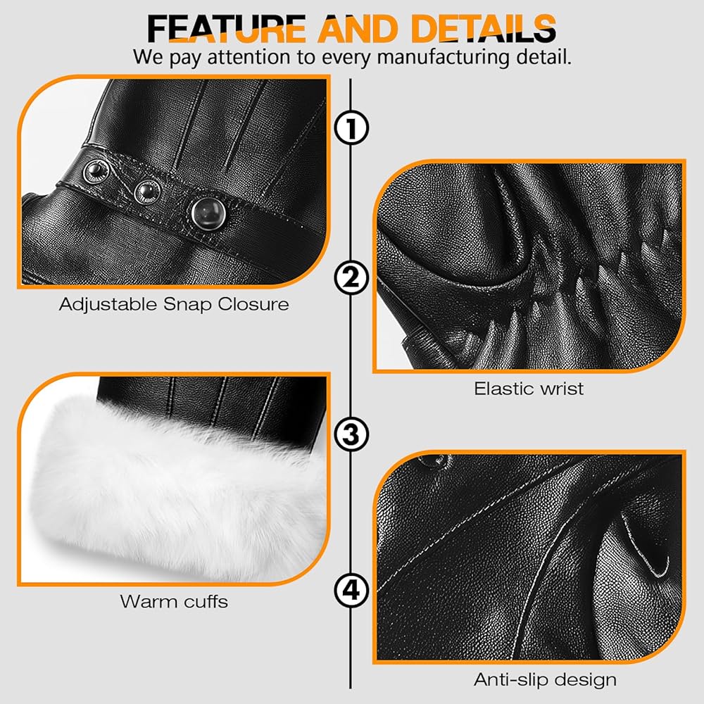 【دفء فاخر لأناقة الشتاء】 هيكل سميك وعازل يحافظ على يديك مغلفة بالدفء مع الحفاظ على صورة ظلية أنيقة وراقية. مزيج مثالي من الراحة والأناقة، مما يضمن لك البقاء دافئًا أثناء التنقل في الطقس البارد أو نزهات المساء أو السفر في الشتاء مع قفازاتنا الجلدية.