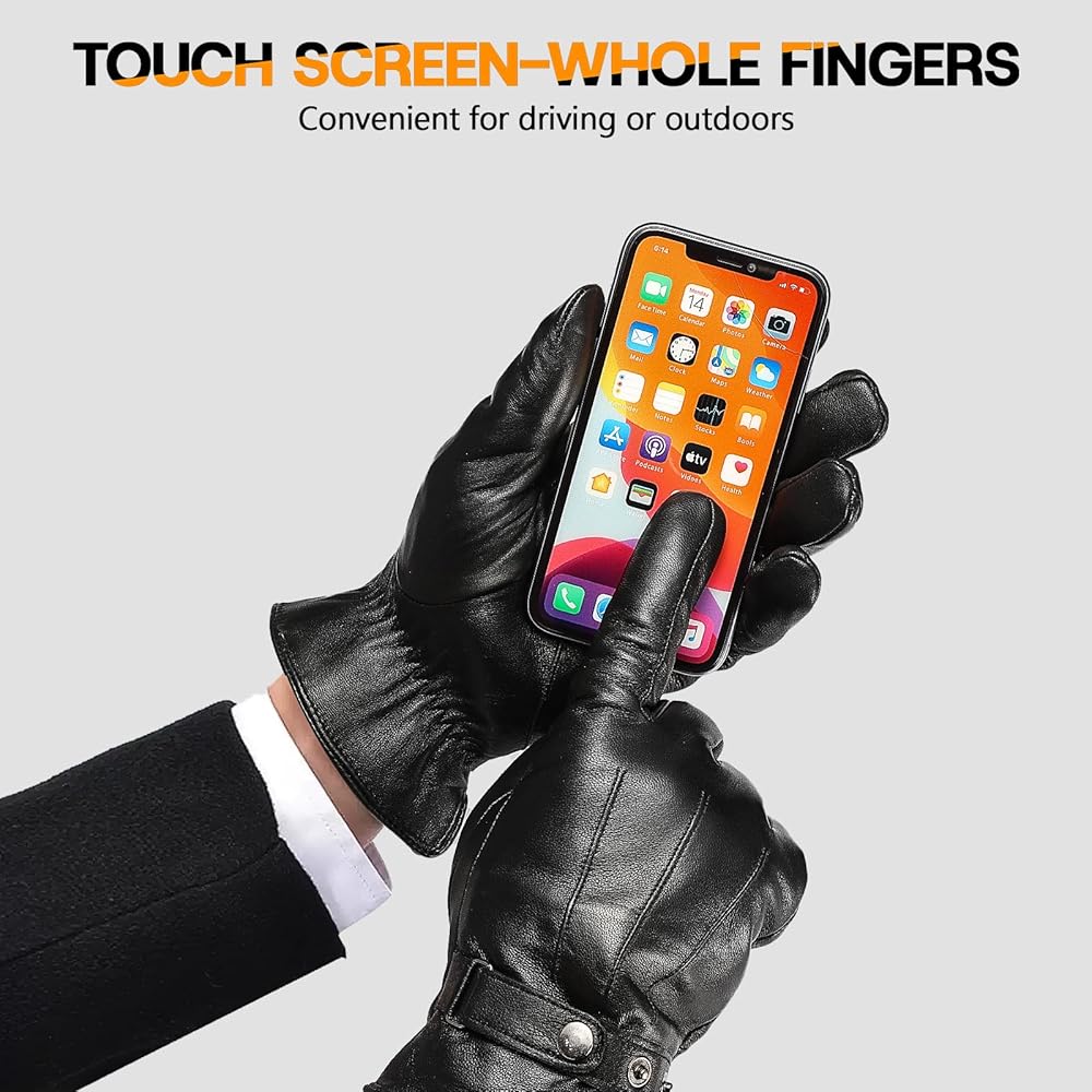 【مصنوعة يدويًا من جلد الغنم الفاخر】 مصنوعة بخبرة من جلد الغنم الأصلي عالي الجودة، هذه القفازات الجلدية الرجالية تقدم مظهرًا راقيًا لا يتأثر بمرور الزمن. ينضح الملمس الناعم والمرن بالرقي - وهو مثالي للملابس الشتوية الراقية وملابس العمل والمناسبات الرسمية.