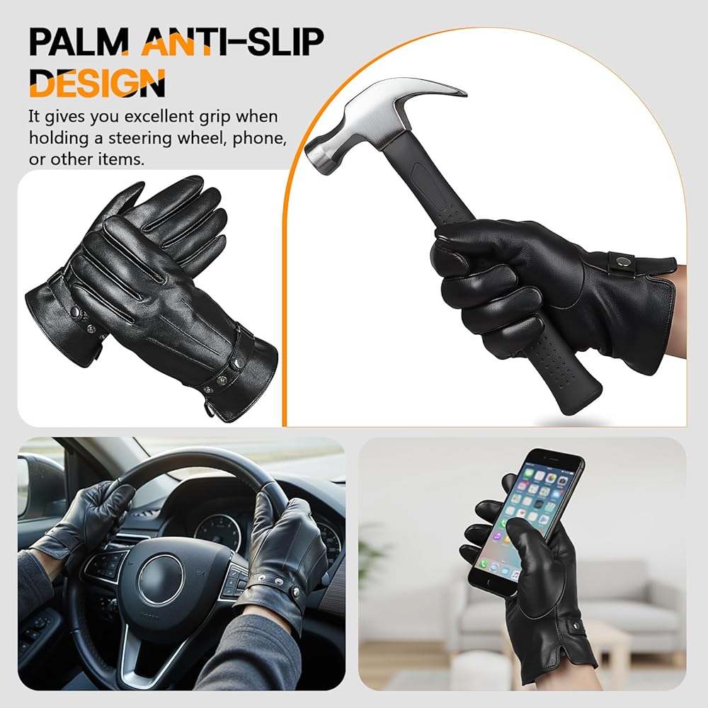 【الهدية المثالية للرجل العصري】 تم تقديم هذه القفازات الجلدية الشتوية بتصميم ممتاز يستحق الهدية، وهي خيار استثنائي للرجال ذوي الذوق الرفيع. إكسسوار مميز يكمل معطفًا مصممًا أو ملابس رسمية، مما يجعله هدية شتوية مدروسة وفاخرة.
