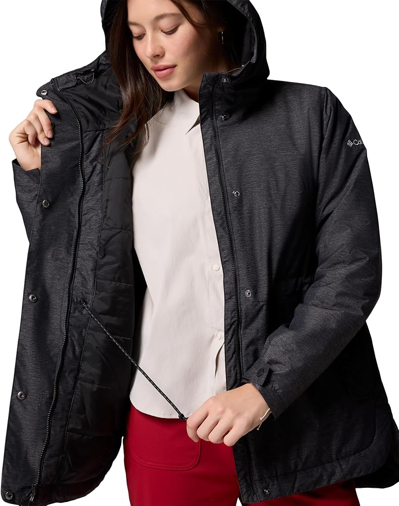 Take cold days in stride with this insulated hooded jacket, featuring adjustable drawcord details to seal in warmth and light rain-and-stain defying technology. Columbia offers this jacket in multiple colors and sizes. Extended sizing available. Regular fit.