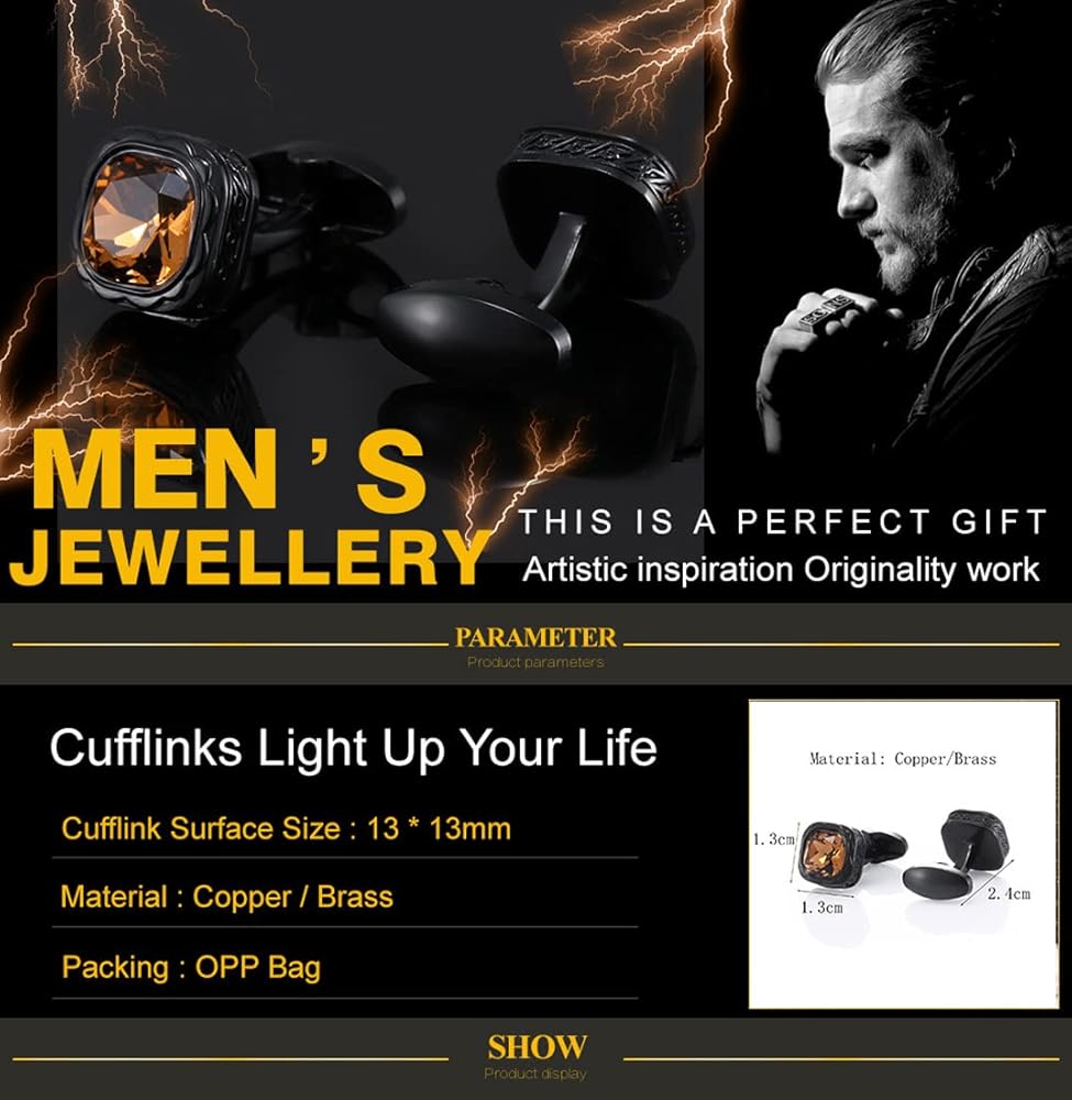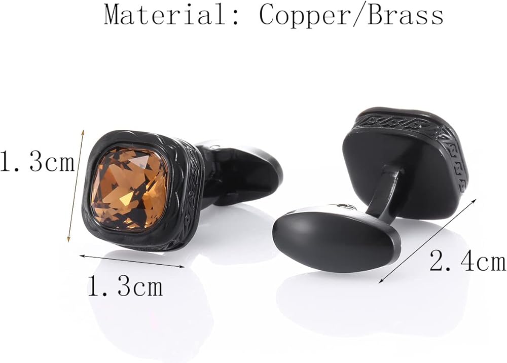 These stylish cufflinks are designed to add a touch of elegance and sophistication to your formal attire. Featuring black stainless steel and an amber crystal in a square shape, they offer a unique and vintage-inspired look. The durable stainless steel construction ensures long-lasting quality, while the warm amber color of the crystal makes these cufflinks stand out. Ideal for weddings, parties, or business events, they are a perfect accessory for men who appreciate refined details.