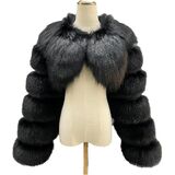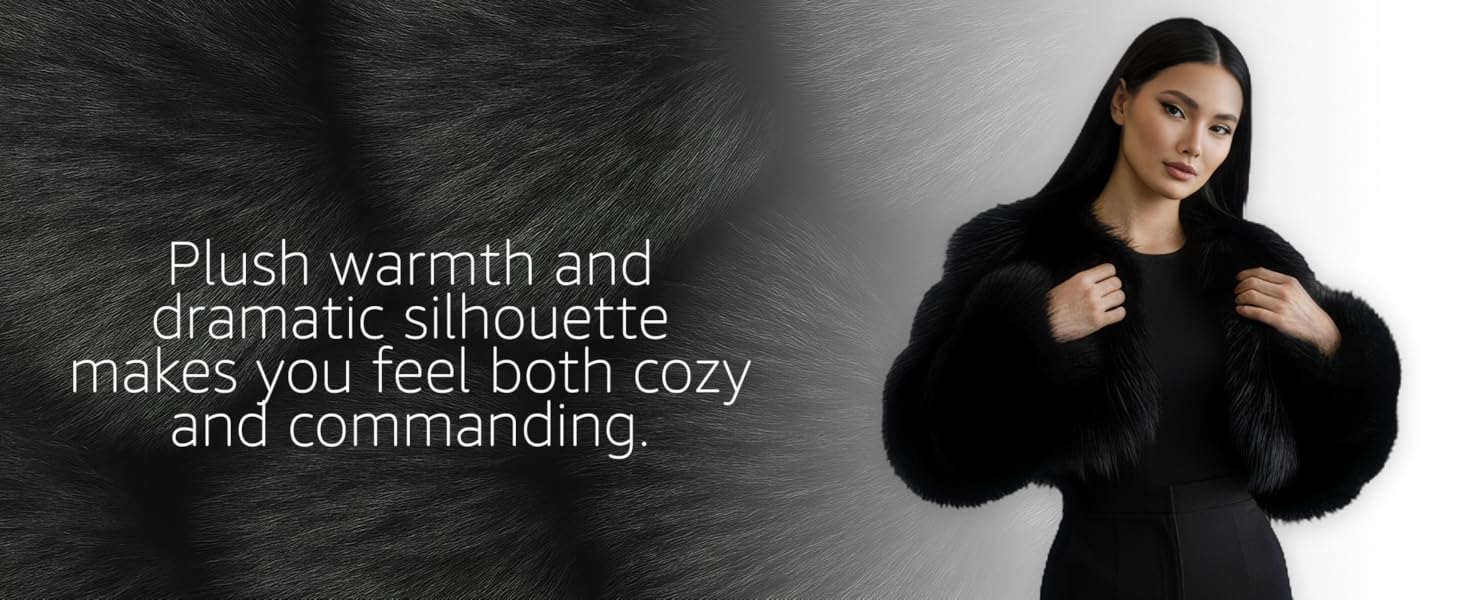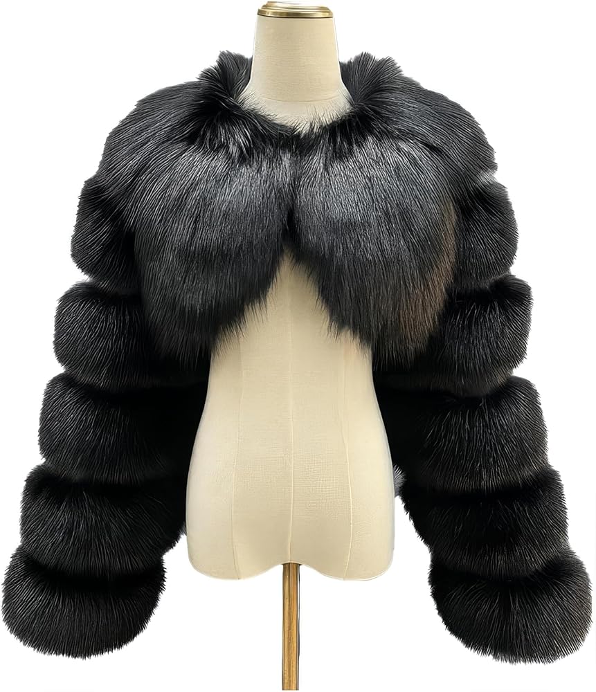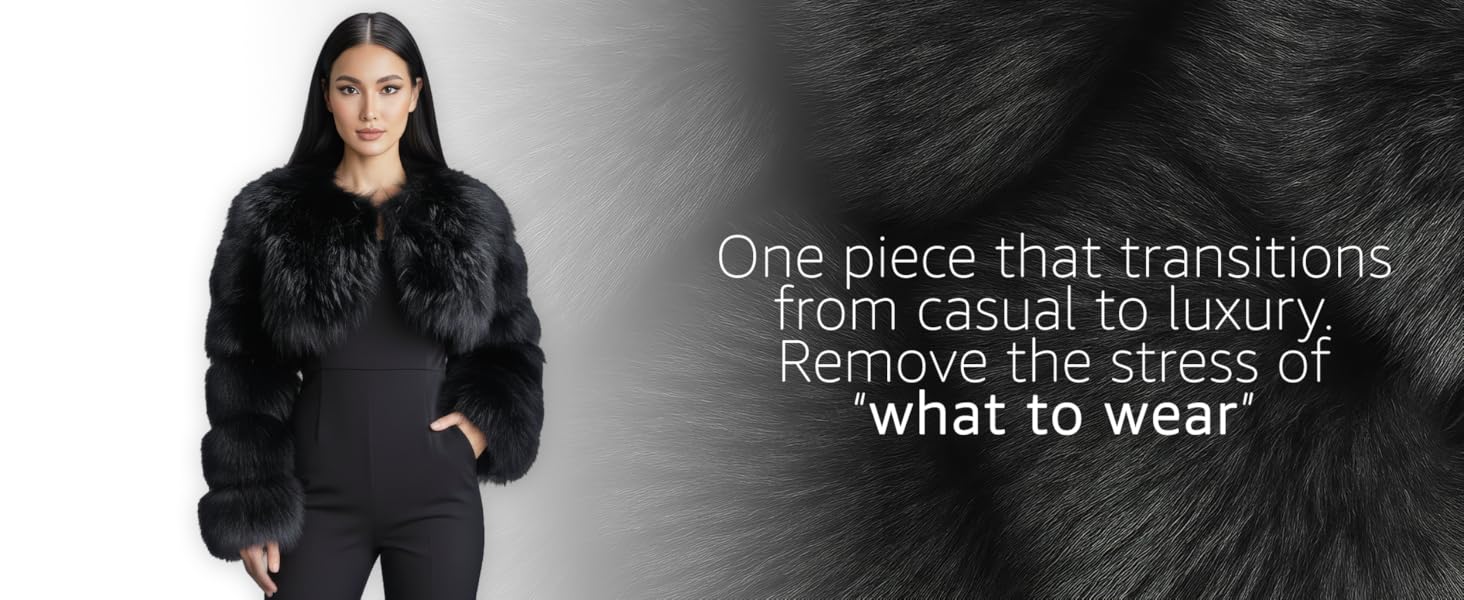 - تصميم فاخر: سترة بوليرو قصيرة تتميز بفراء ثعلب صناعي فاخر مع نسيج فاخر من طبقات لمظهر أنيق ومتطور