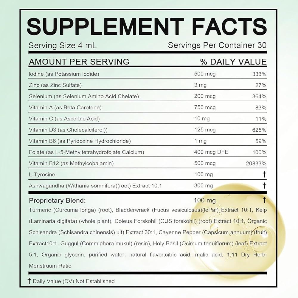 【مكمل الغدة الدرقية عالي الجودة】زجاجة سعة 120 مل - يتم إنتاج كل دفعة من Actora Thyroid Support وفقًا لمعايير الجودة الصارمة. توفر قطرات دعم الغدة الدرقية السخية سعة 120 مل تغذية يومية يمكن الاعتماد عليها، وتوفر دعمًا موثوقًا للغدة الدرقية للنساء والرفاهية العامة.