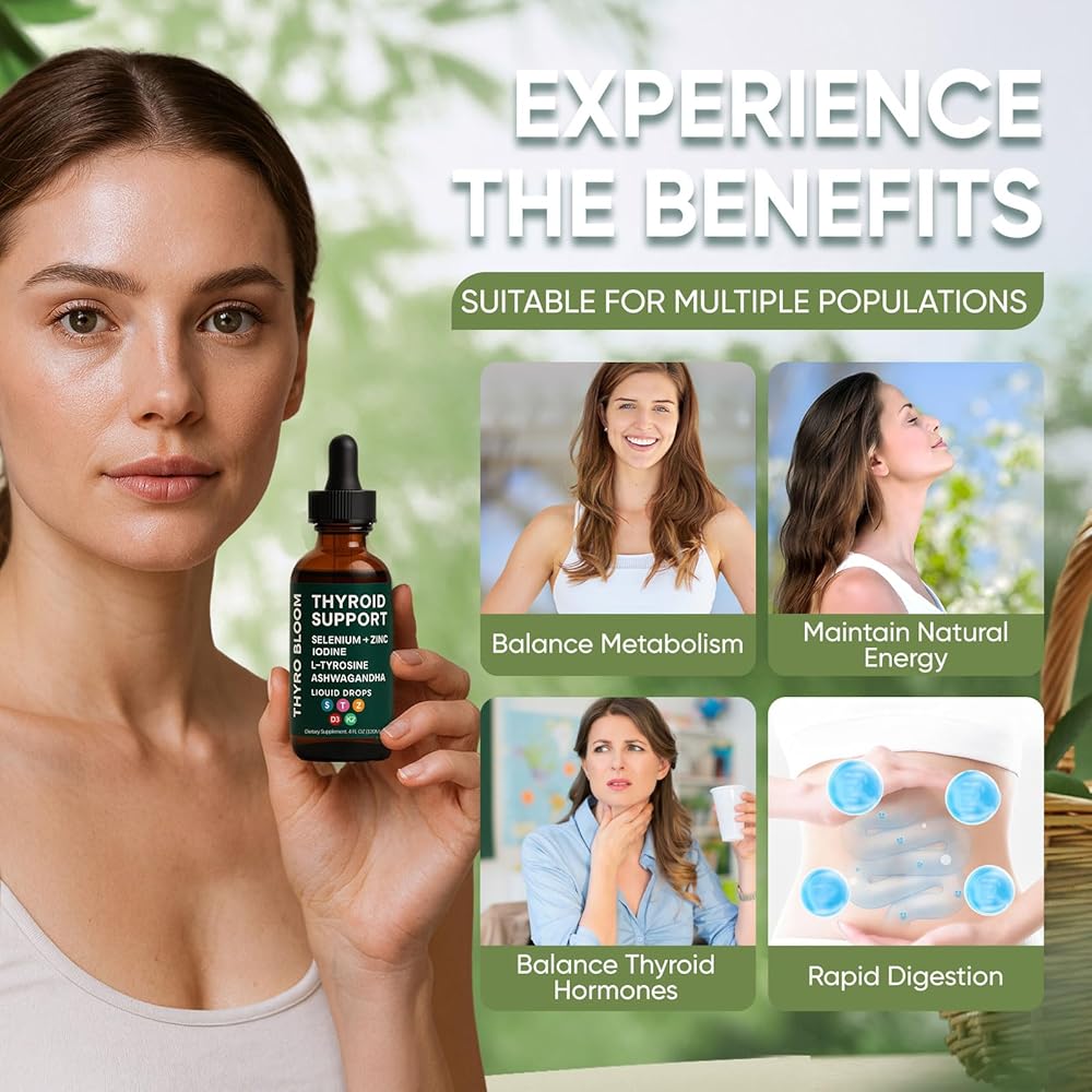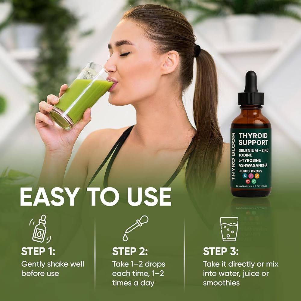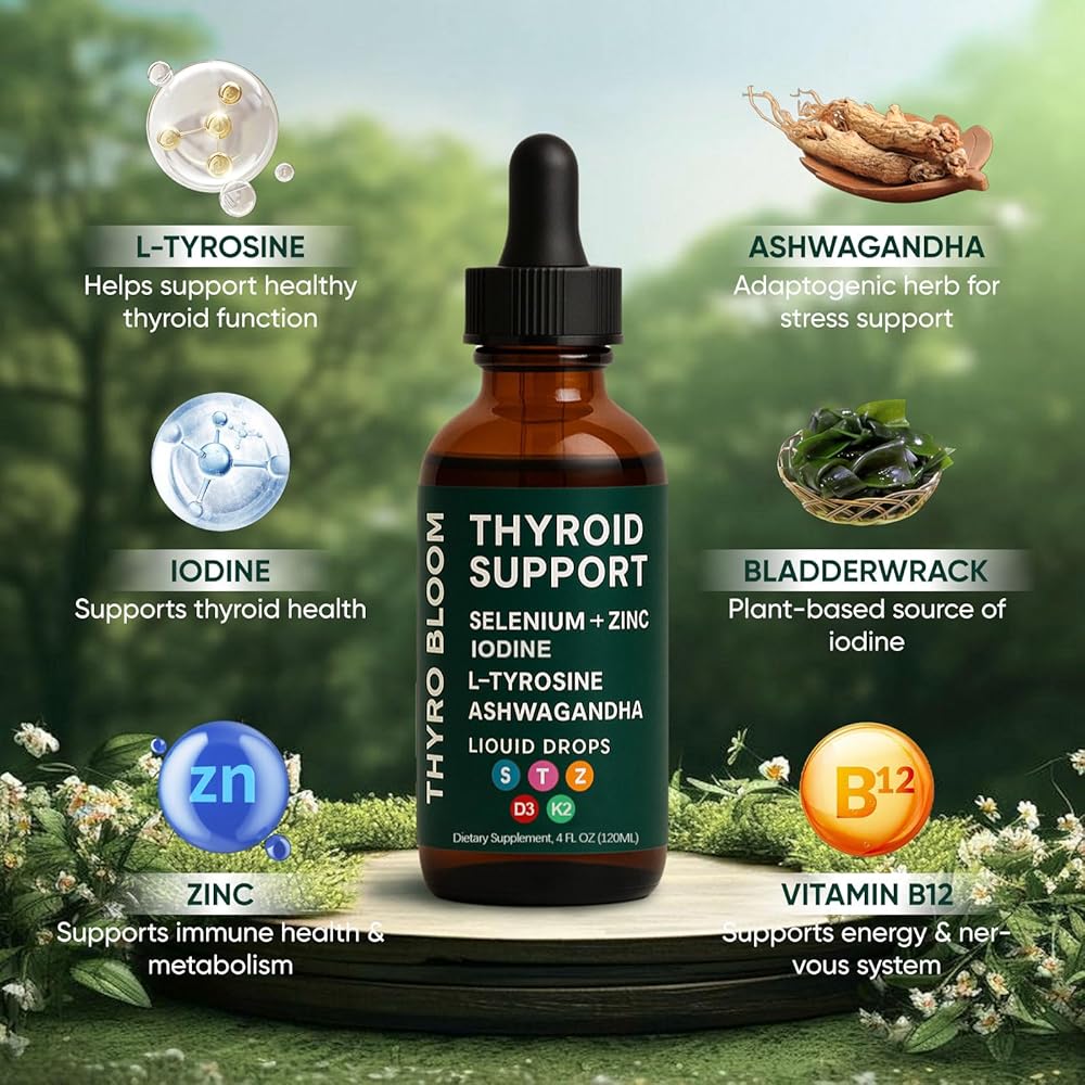 【قطرات دعم الغدة الدرقية من Actora】مكمل ممتاز للغدة الدرقية للنساء يجمع بين اليود والسيلينيوم والزنك وL-Tyrosine. تعمل قطرات دعم الغدة الدرقية بشكل تآزري للحفاظ على التمثيل الغذائي الصحي والتوازن الهرموني والحيوية العامة كجزء من روتينك اليومي.