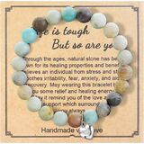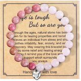 【المادة والحجم والجودة】: مصنوعة من حجر طبيعي مقاس 8 مم بمحيط 6.5 بوصة. هذه الأساور المطرزة، المصنوعة على يد عمال محترفين، مناسبة لمعظم المعصمين بسبب مرونتها العالية وهذا الحبل المرن أكثر مقاومة للماء ومتينة.