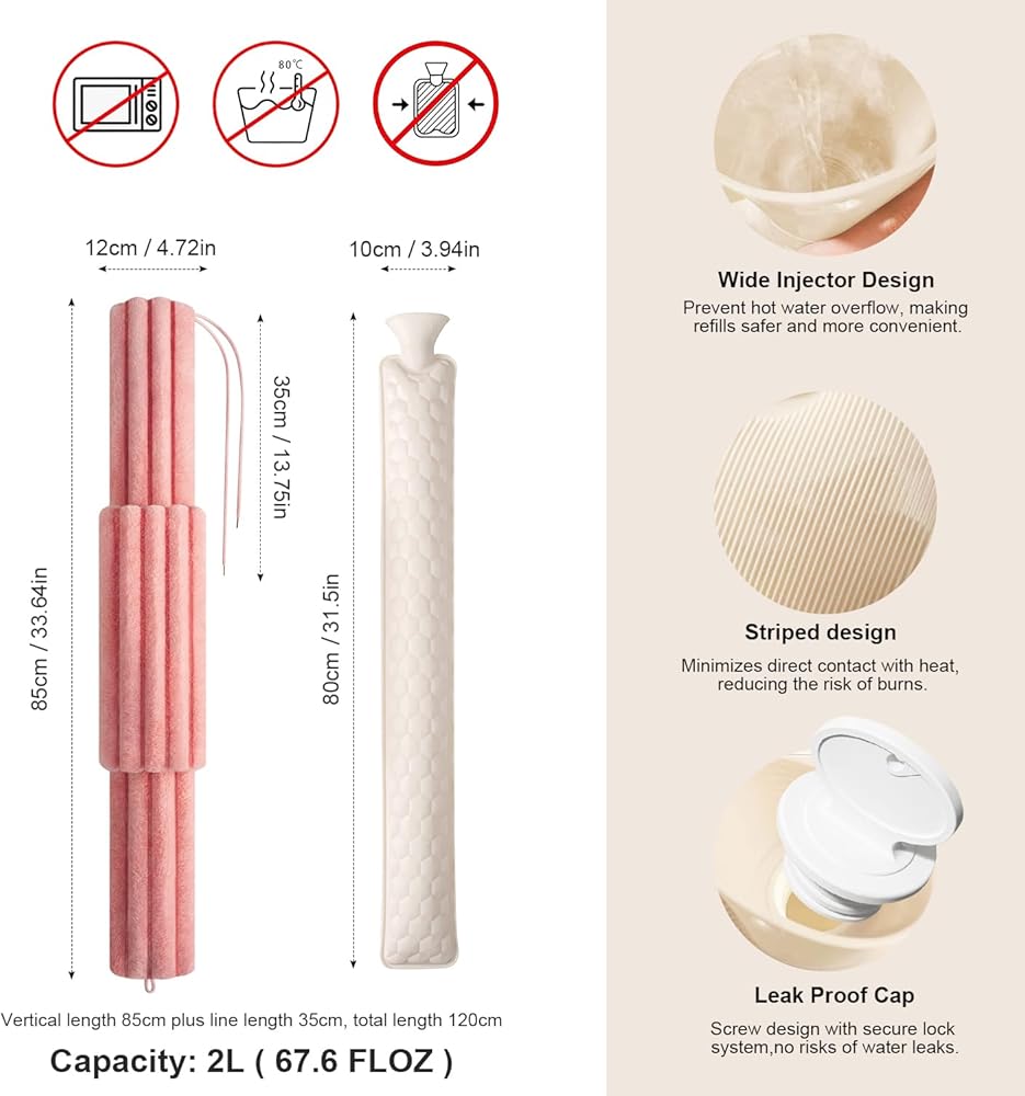 [آمنة وسهلة الاستخدام] - اجتازت أكياس الماء الساخن 24 ساعة من اختبار مقاومة الانفجار والتسرب قبل مغادرة المصنع. المواد الخالية من مادة BPA أكثر ملاءمة للنساء الحوامل وكبار السن والأطفال. يرجى ملء ثلثي 80 درجة من الماء فيه.
