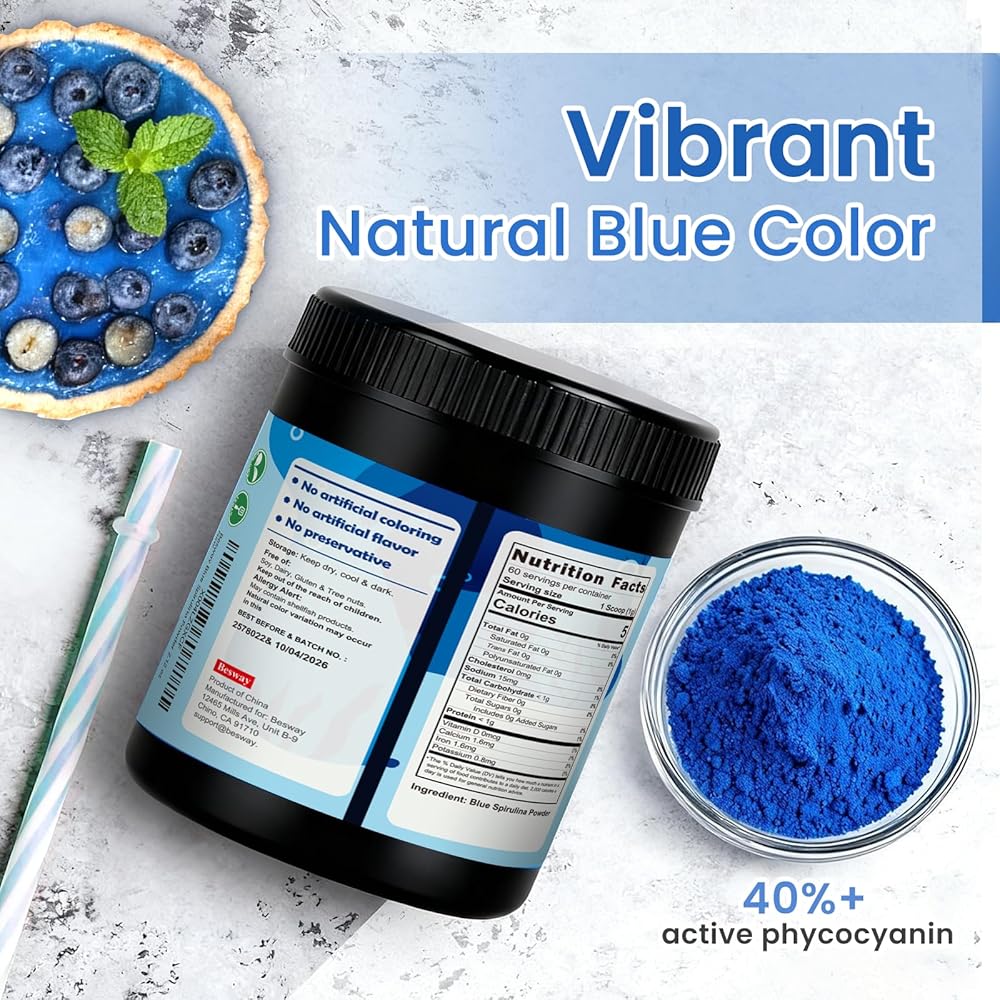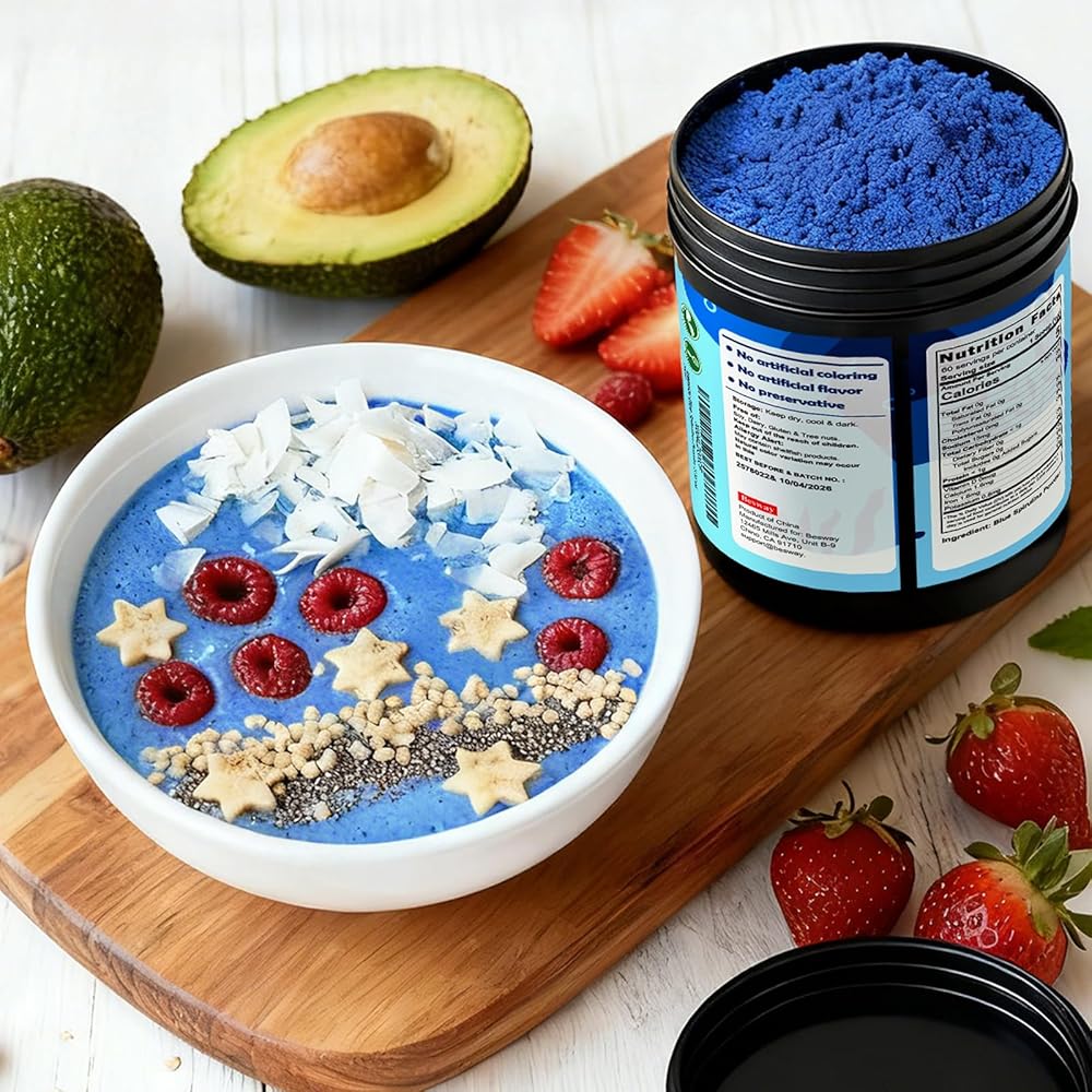 𝐕𝐢𝐛𝐫𝐚𝐧𝐭 𝐍𝐚𝐭𝐮𝐫𝐚𝐥 𝐁𝐥𝐮𝐞 𝐇𝐮𝐞 | 𝐒𝐨𝐮𝐫𝐜𝐞𝐝 𝐟𝐫𝐨𝐦 𝐏𝐡𝐲𝐜𝐨𝐜𝐲𝐚𝐧𝐢𝐧, 𝟎 مع محتوى الفيكوسيانين الذي يزيد عن 10% (المركب الأزرق الطبيعي في السبيرولينا)، المضغوط على البارد للحفاظ على الفاعلية، يوفر هذا المسحوق لونًا جريئًا ومقاومًا للبهتان للعصائر أو الماكرون أو الكوكتيلات أو منتجات الأطفال. يعامل. مشتق طبيعيًا بنسبة 100% - بدون صبغات صناعية، بدون مذاق مرير.