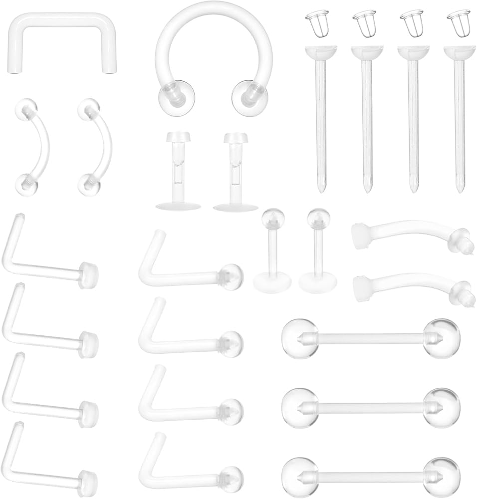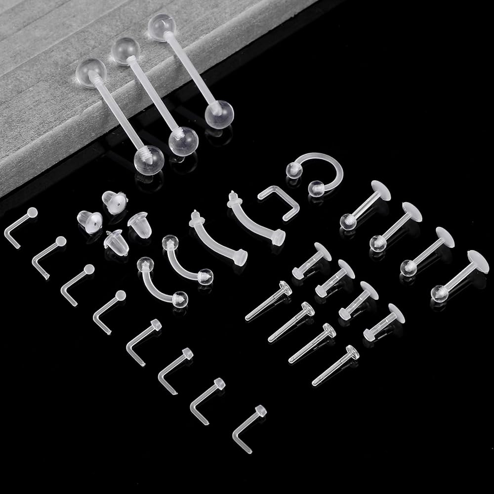 • Complete Piercing Set: This 29-piece clear acrylic piercing retainer set includes multiple styles for various body piercings, featuring nose studs, cartilage earrings, earlobe earrings, rook earrings, septum retainers, providing comprehensive solutions for different piercing needs with versatile applications