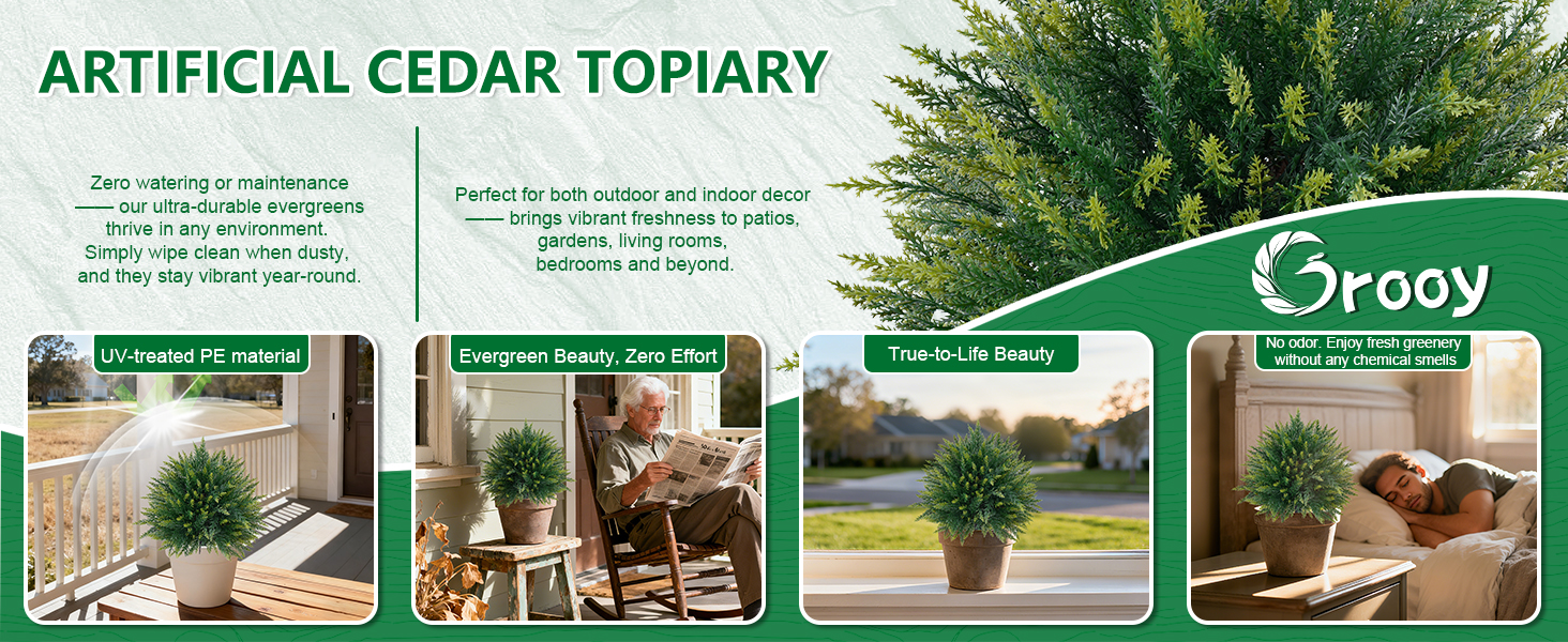 【مواد عالية الجودة وتدوم طويلاً】تم بناء هذا النبات الاصطناعي مقاس 23 بوصة من مادة البولي إيثيلين الممتازة المقاومة للأشعة فوق البنفسجية. يقاوم نبات السرو الاصطناعي البهتان والتلف، ويحافظ على خضرته النابضة بالحياة حتى في البيئات الخارجية الصعبة.