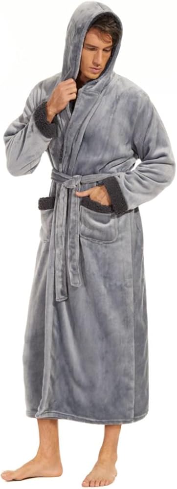 【رداء رجالي بغطاء رأس من القطيفة】- الميزة الخاصة لروب الحمام الرجالي ذو القلنسوة المصنوع من الصوف خفيف الوزن هو القلنسوة الدافئة الكبيرة. يمكن لهذا الغطاء الناعم والمنتفخ أن يحافظ على دفء وراحة أذنيك ورأسك ورقبتك حتى في ليالي الشتاء الباردة.
